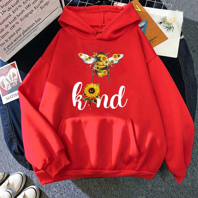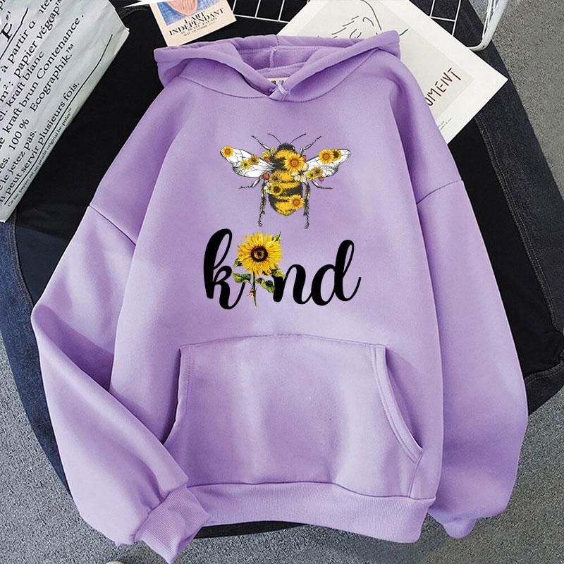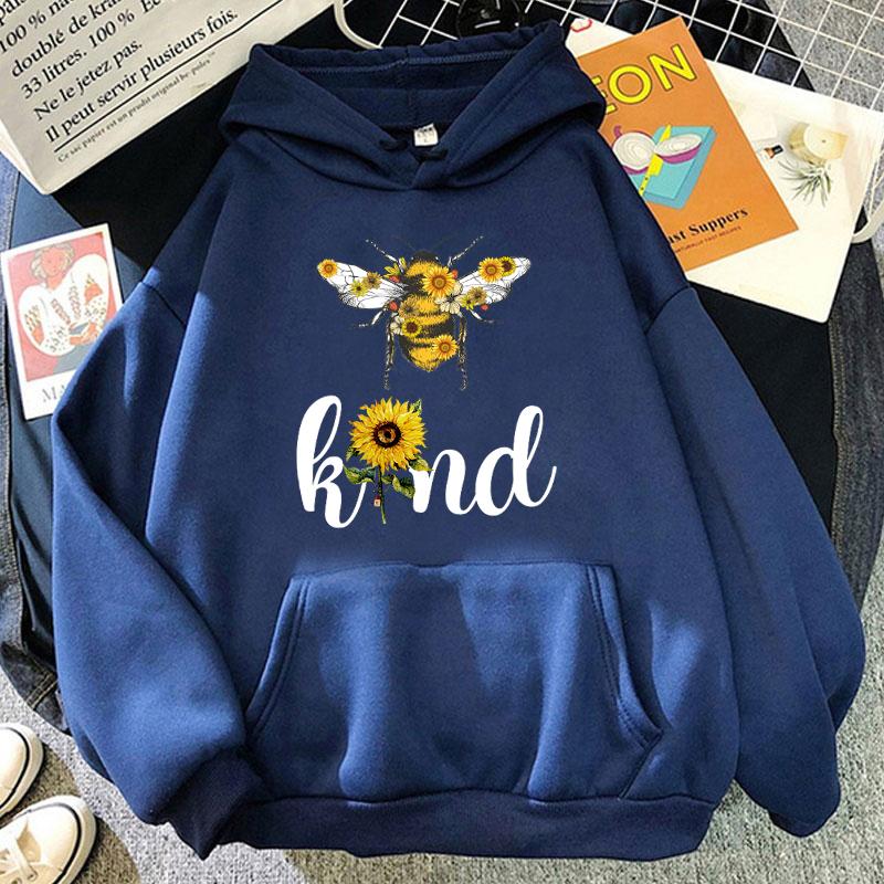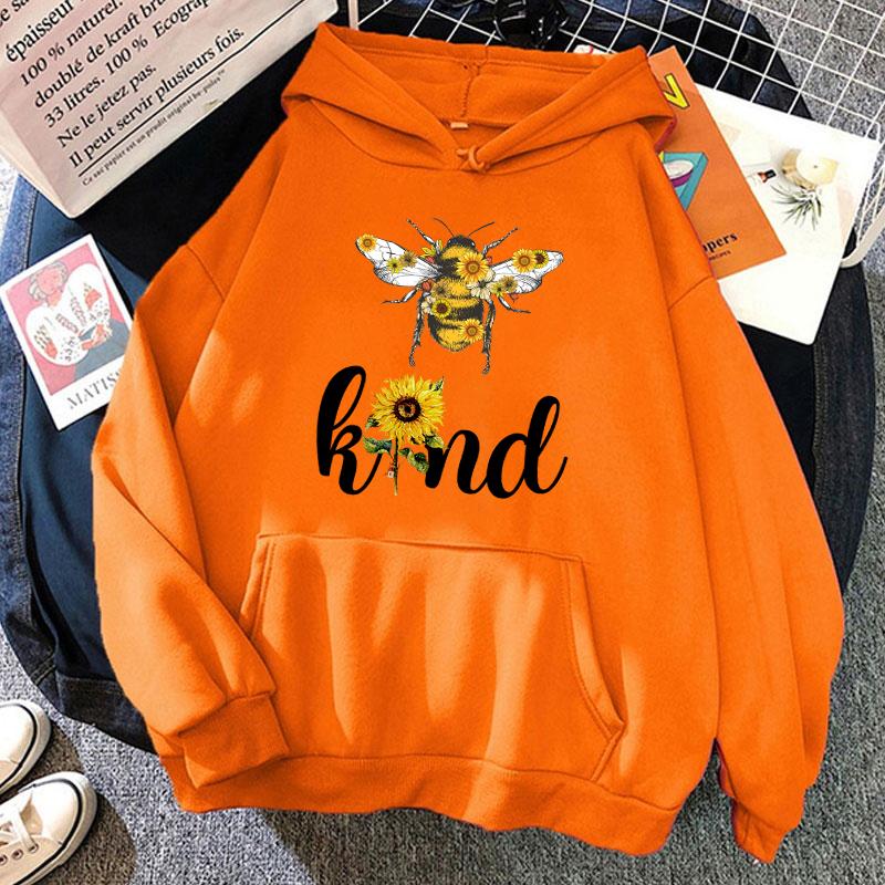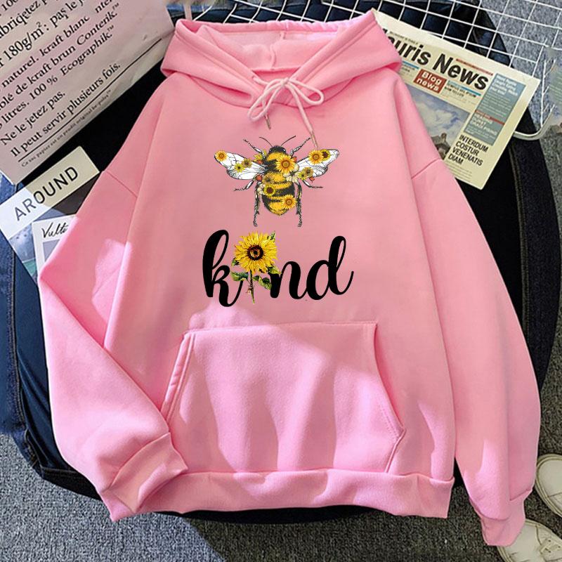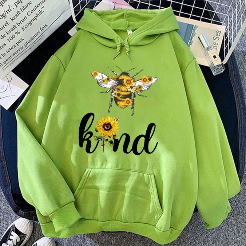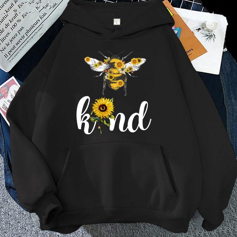 Новая мода унисекс женские толстовки Bee Kind свитшот с принтом осень и зима повседневные топы с капюшоном и длинными рукавами(Отправка в течение 48 часов)