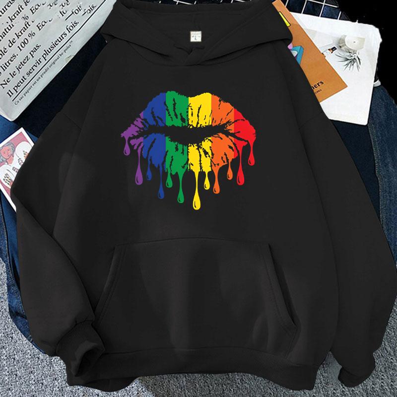 Женские зимне-осенние модные повседневные толстовки с капюшоном и длинными рукавами, Лгбт-прайд, радужные губы, толстовки, свободный пуловер — купить товар онлайн с бесплатной доставкой по всему миру!