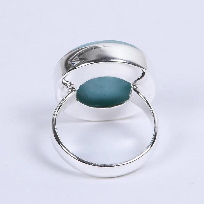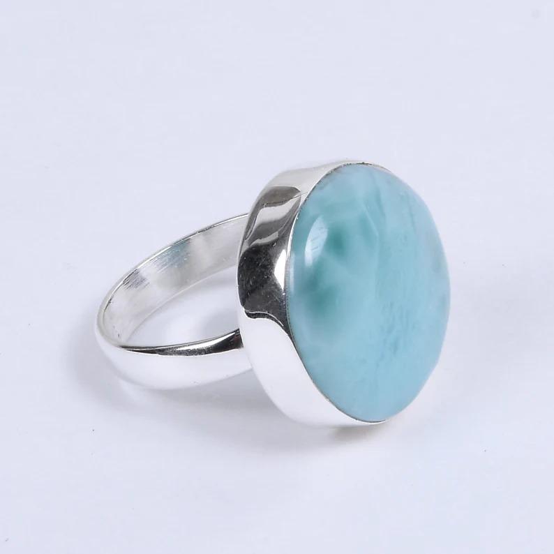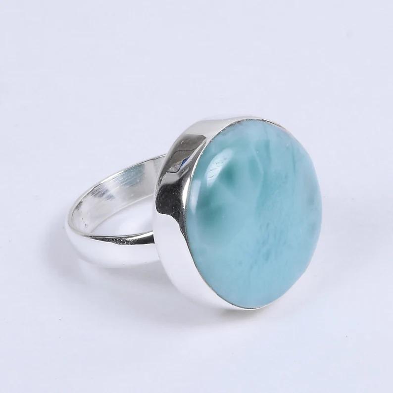 Кольцо с круглым драгоценным камнем из натурального ларимара, кольцо из твердого серебра 925 пробы, женское кольцо, подарок на годовщину дня рождения, кольцо ручной работы