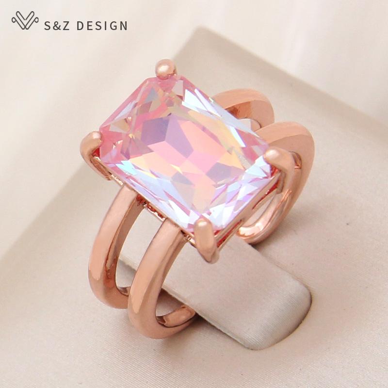 Модные красочные регулируемые прямоугольные кольца с кристаллами для женщин, ювелирные изделия цвета розового золота, повседневные аксессуары