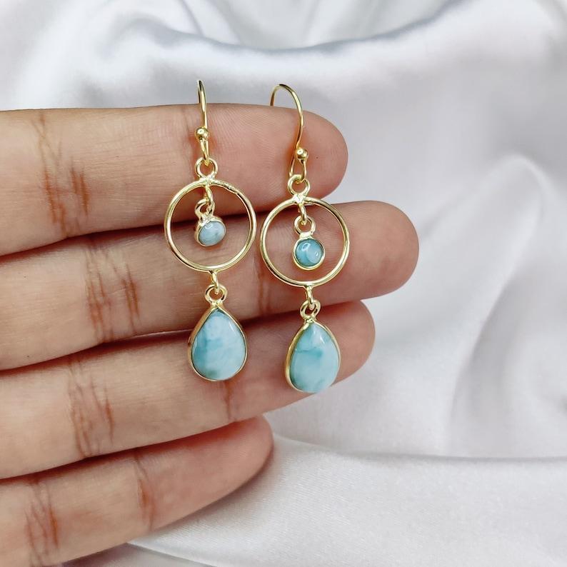 Серьги из натурального ларимара, серебряные серьги 925 пробы, женские серьги из желтого золота, подарок для нее, рождественский подарок, висячие серьги
