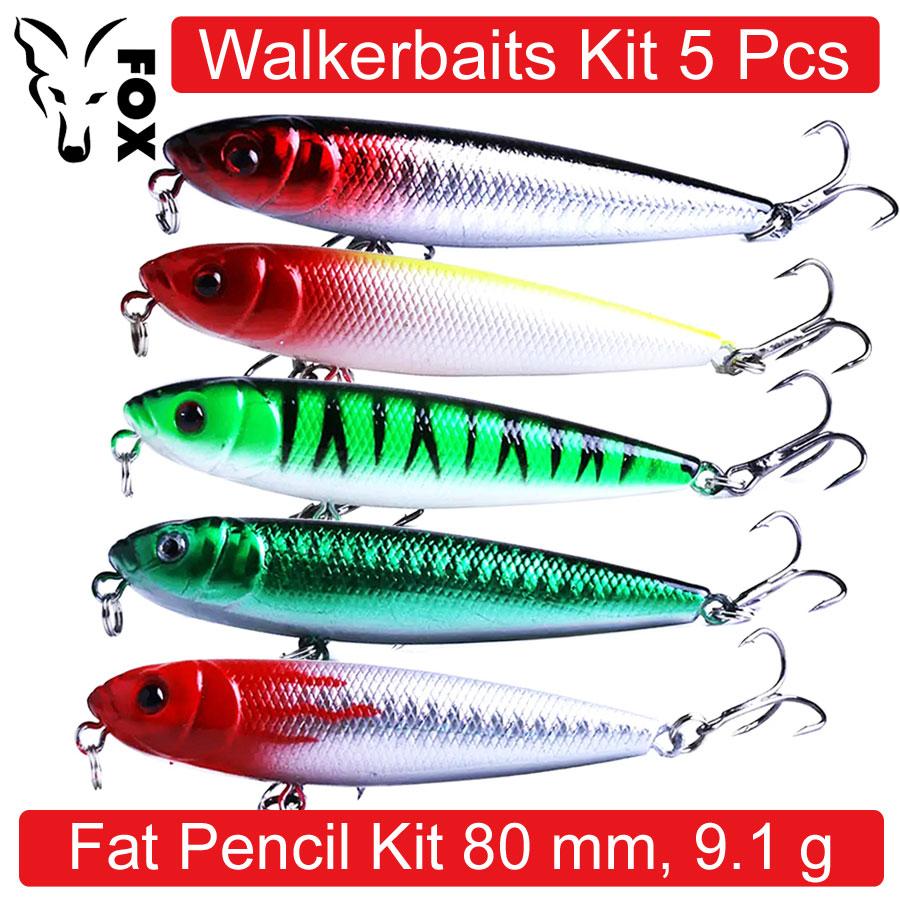Все уокеры FOX Fat Pencil Kit выполнены из ABS Plastic в 5-ти привлекательных расцветках, оснащены 3D Lure Eyes глазами и экстра острыми тройными крючками #6.