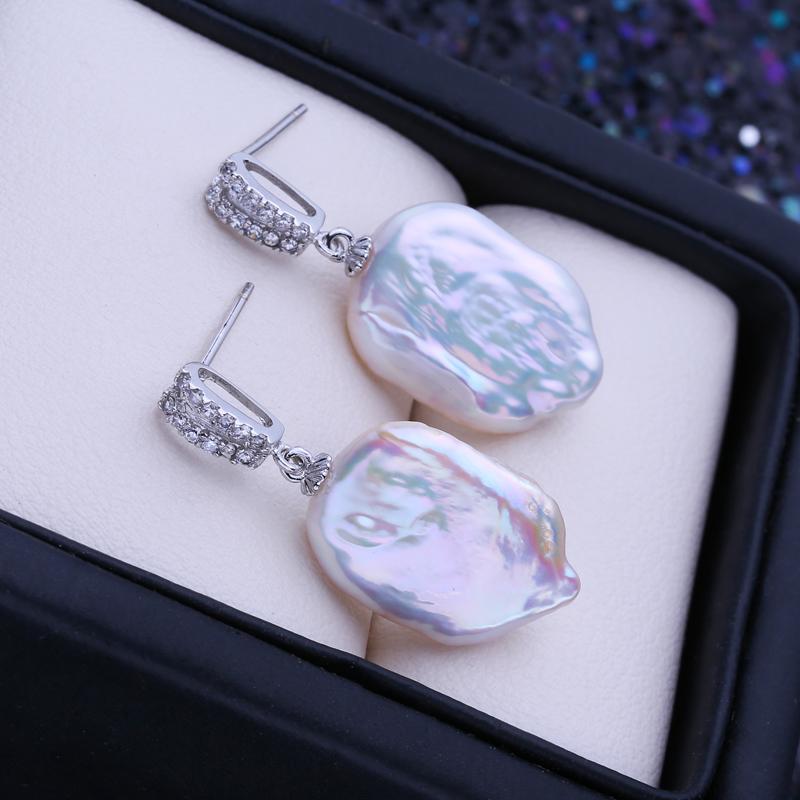 LSOOYH натуральный пресноводный белый большой барочный жемчуг серьги для женщин модные серебряные серьги-капли свадебные украшения