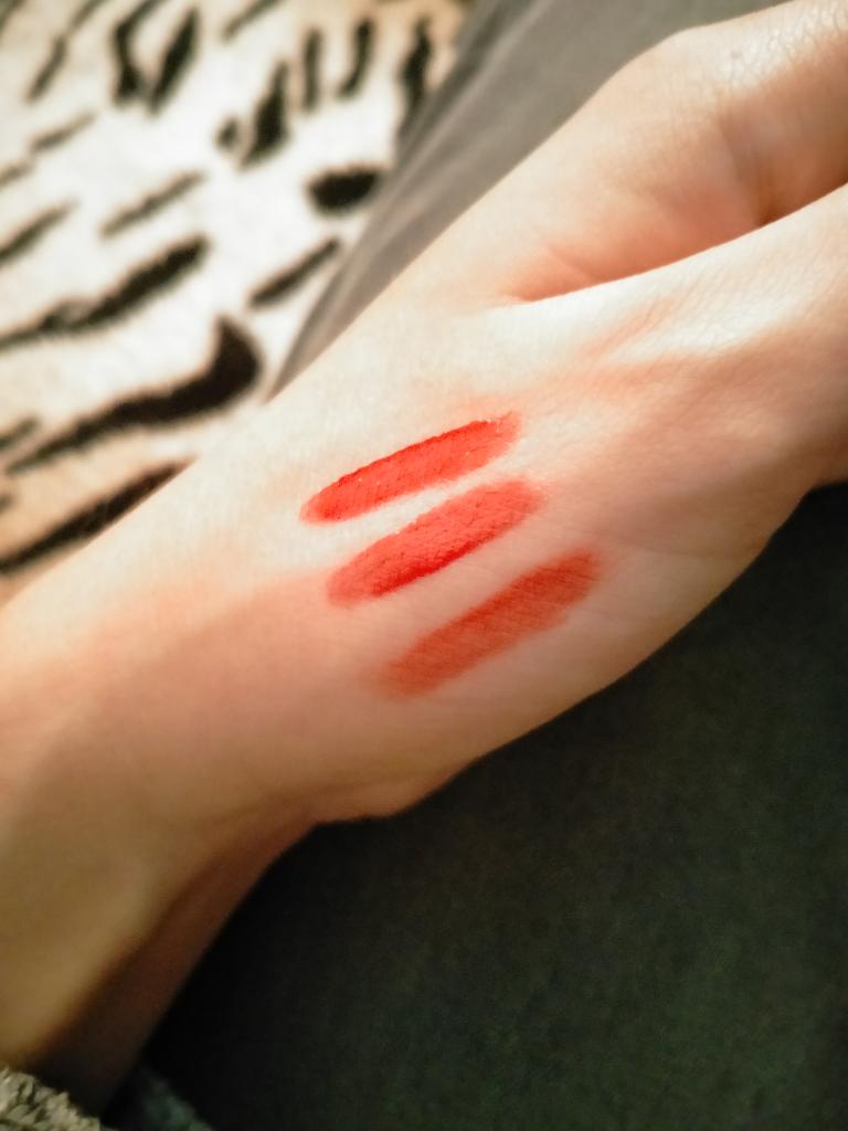 На данный момент это лучший вариант помады для меня. Наносится как бальзам, даже еще более жидко, поэтому могут возникнуть небольшие трудности с выравниванием тона, но это не такая большая проблема, т.к. это не особо видно Спустя около двух часов носки бальзам начинает сохнуть и постепенно превращается в подобие матовой помады. Но губы при этом не сохнут, приятно удивило, как и то, что эта помада не съедается при обычной носке без приёмов пищи Наношу без предварительного увлажнения на фото только что нанесенная помада (красный или коричневый тюбик, точно не помню, они очень похожи тоном, а розовый тюбик типа нюд, между оранжевым и коричневым) Всем добра 🍑