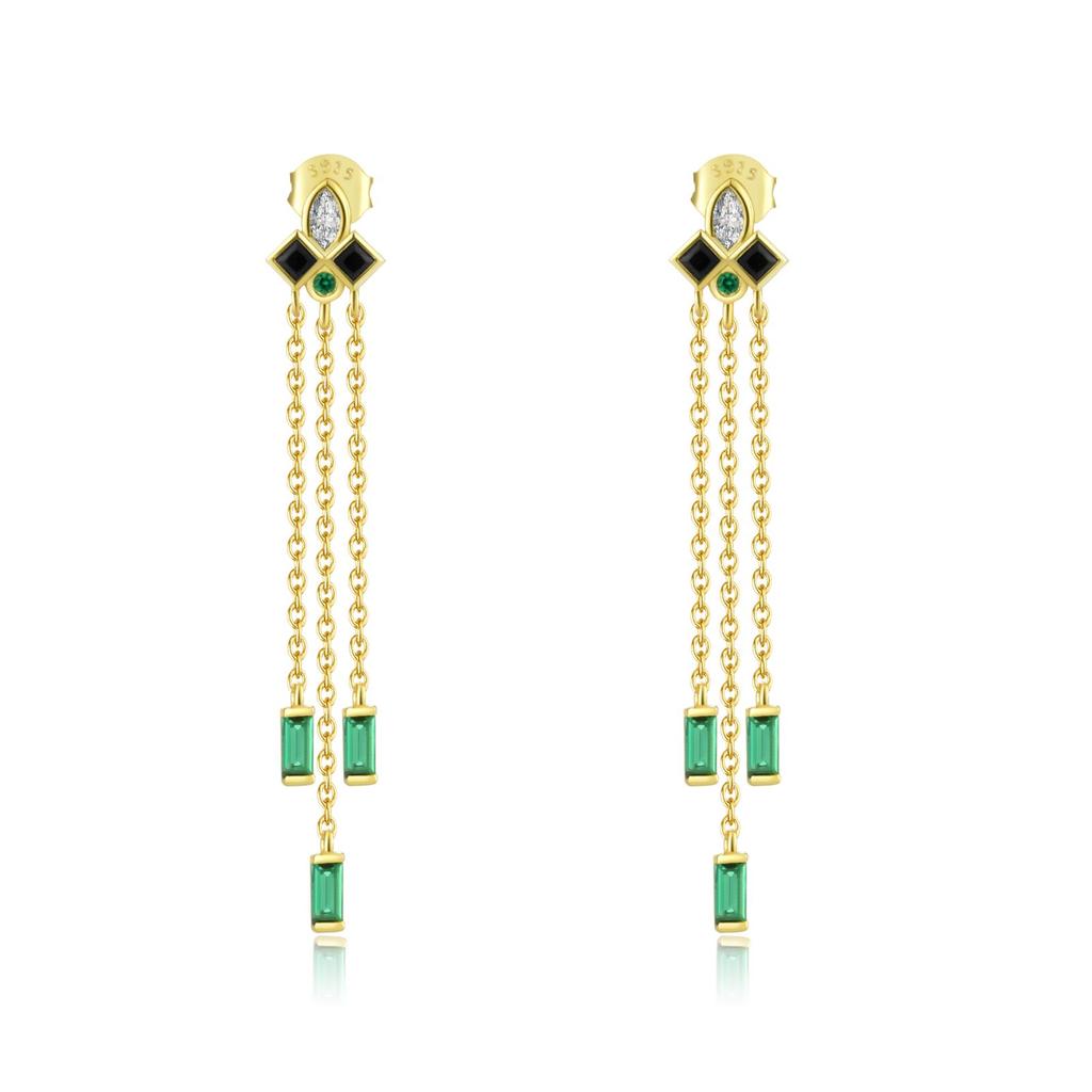 ANDYWEN Серьги-капли из стерлингового серебра 925 пробы, золотые, зеленые, с фианитами, длинная цепочка, роскошные ювелирные изделия, 2023, хрустальные драгоценности