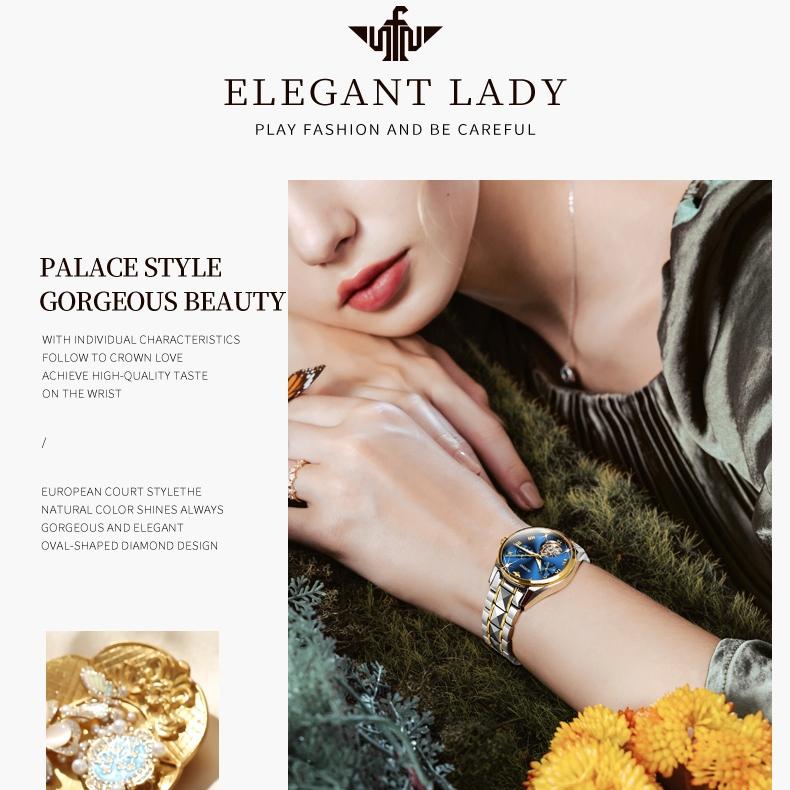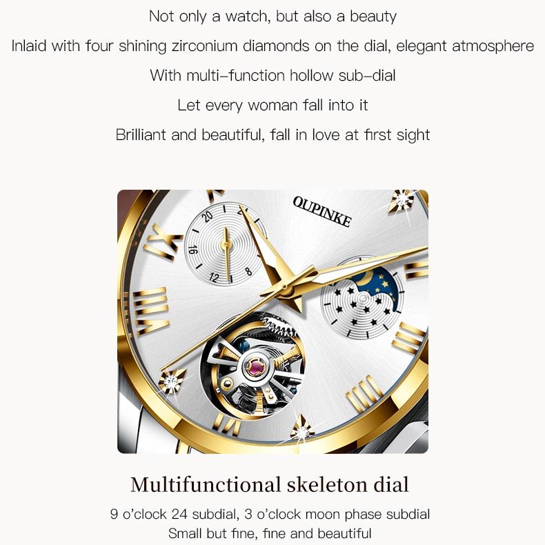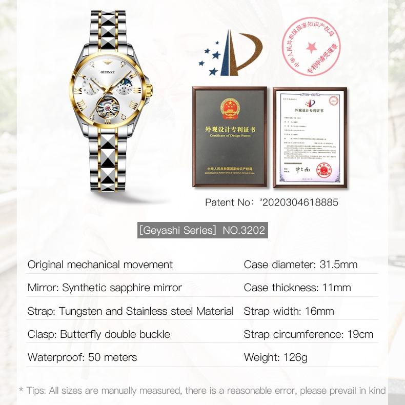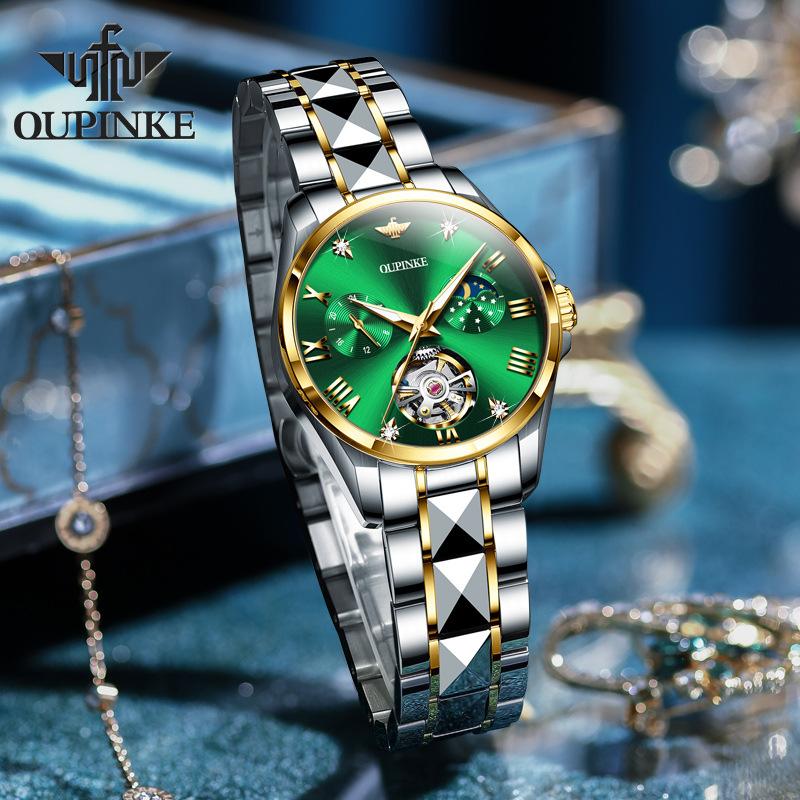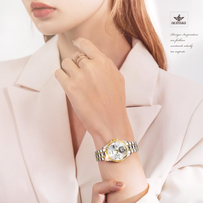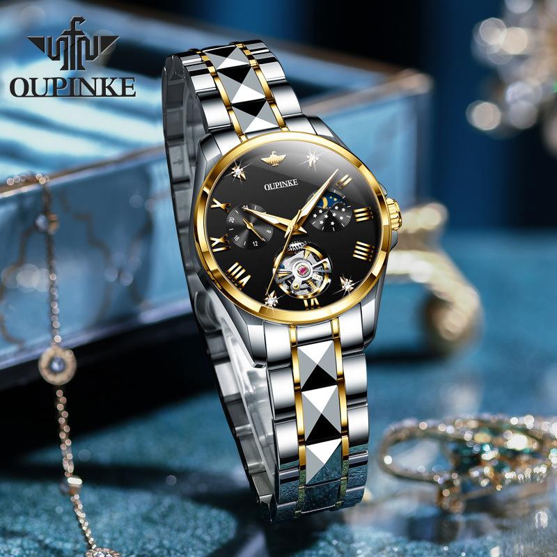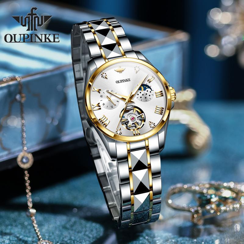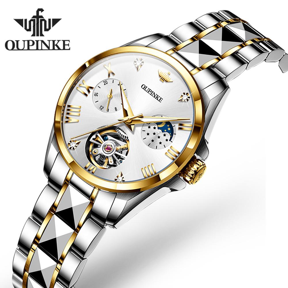 OUPINKE Новые водонепроницаемые автоматические механические часы с фазой Луны, женские часы