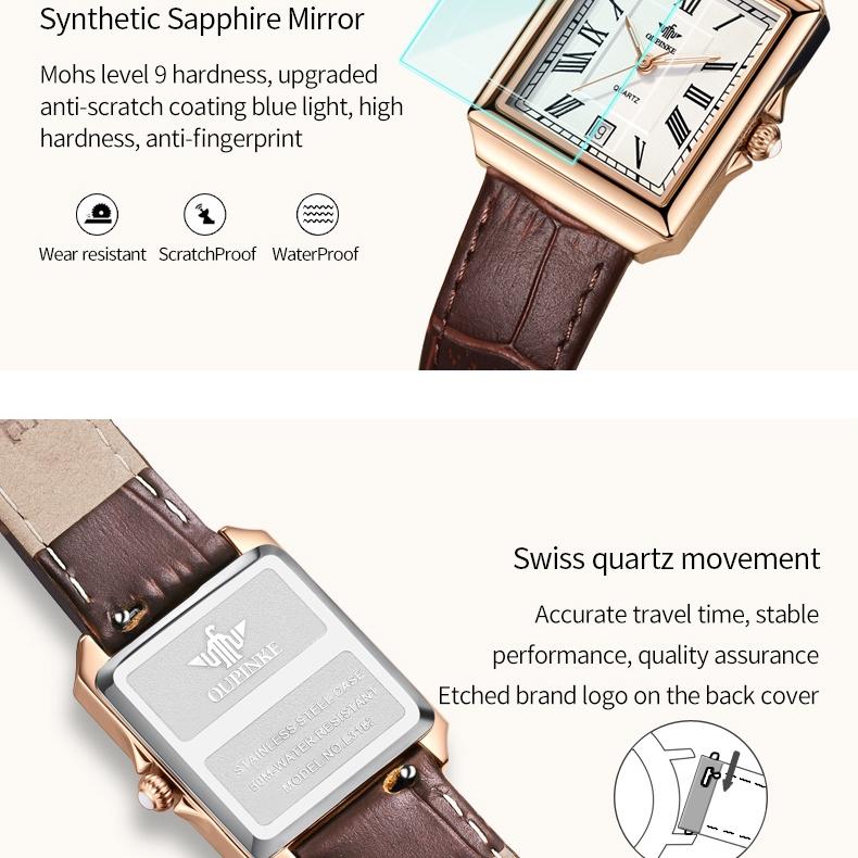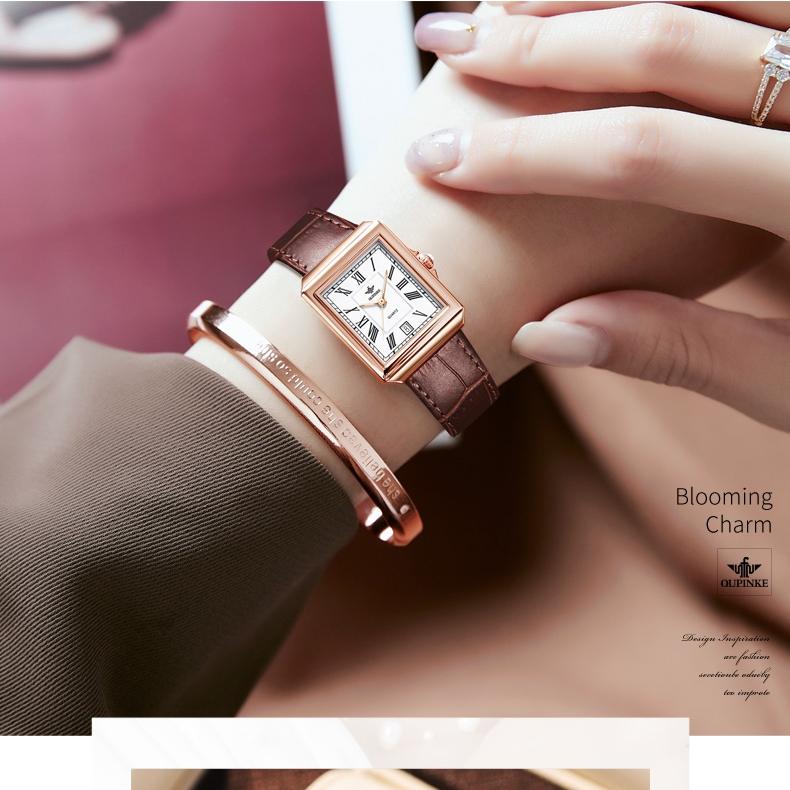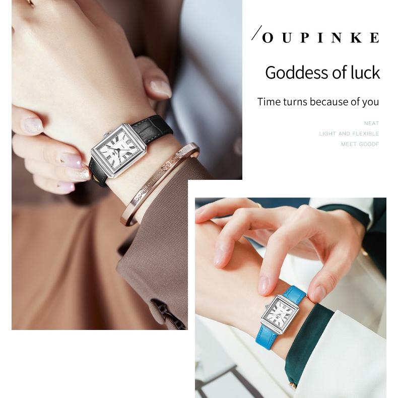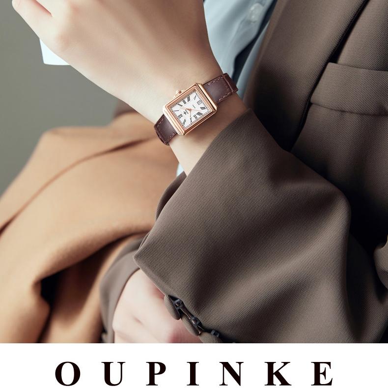 OUPINKE Брендовые часы, прямоугольные модные кварцевые часы, водонепроницаемые, простые, компактные, женские часы высокого уровня внешнего вида, женские часы