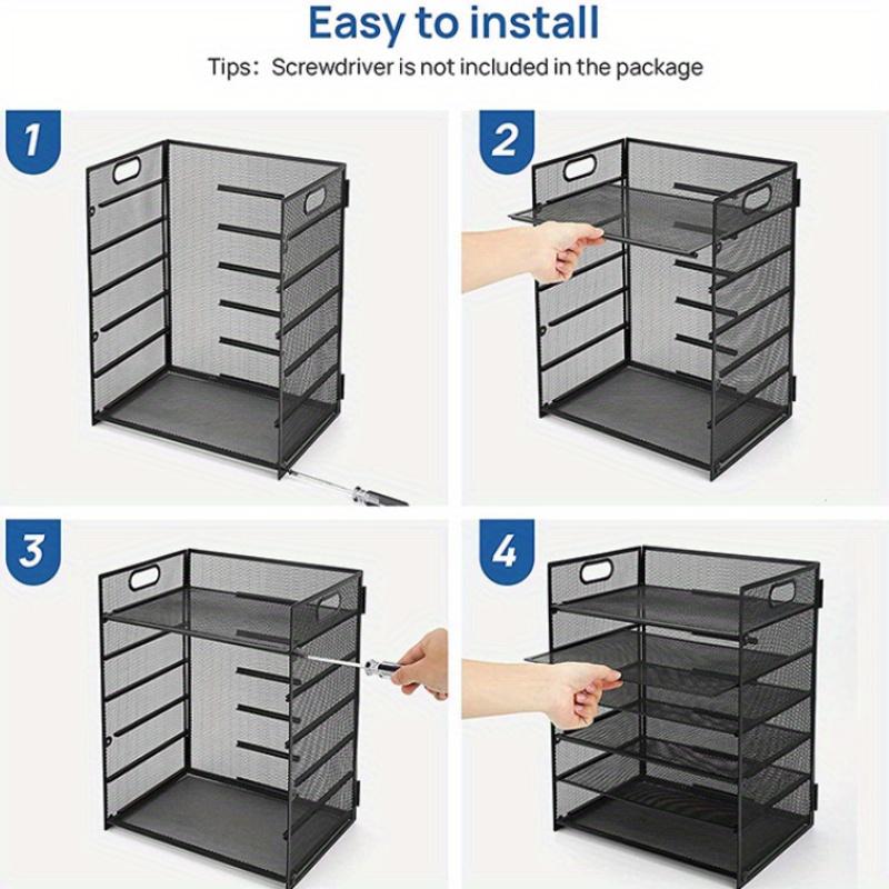 1шт 6-уровневый органайзер для бумаги Лоток для писем - сетчатый настольный органайзер для файлов с ручкой, органайзер для сортировщика бумаги для держателя папки для офисных файлов Letter / A4 - черный