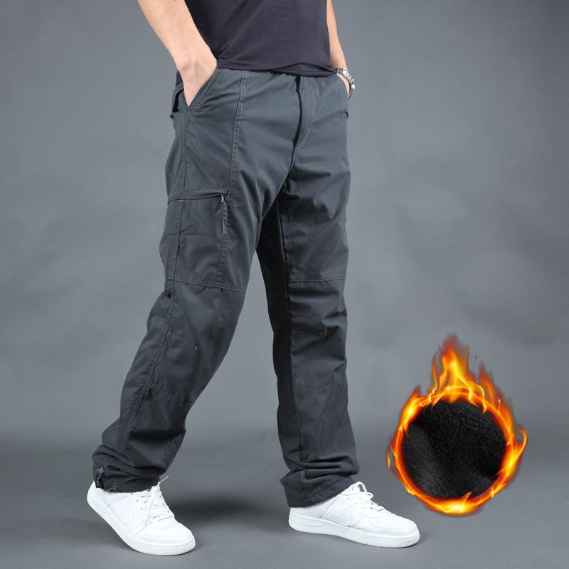 Зимние плюшевые и теплые мужские брюки с несколькими карманами