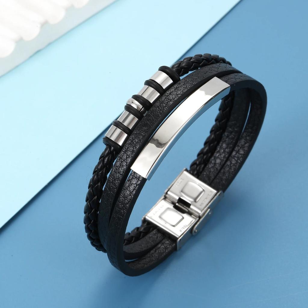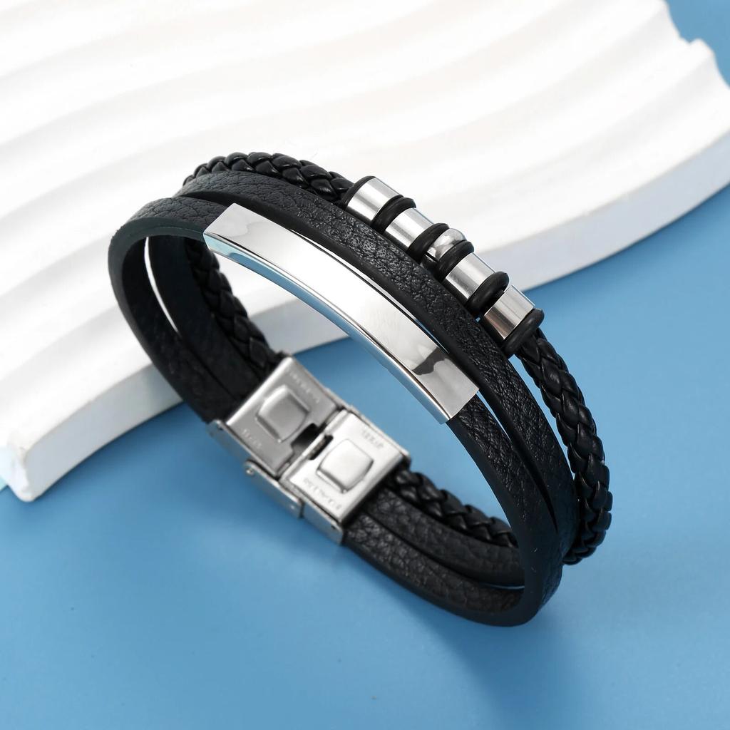 Очаровательные ювелирные изделия из нержавеющей стали, кожаный гладкий браслет для мужчин