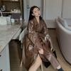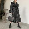 Длинный кожаный плащ большого размера для женщин, свободный крой с длинными рукавами и лацканами, осенняя стильная черная одежда, уличная одежда