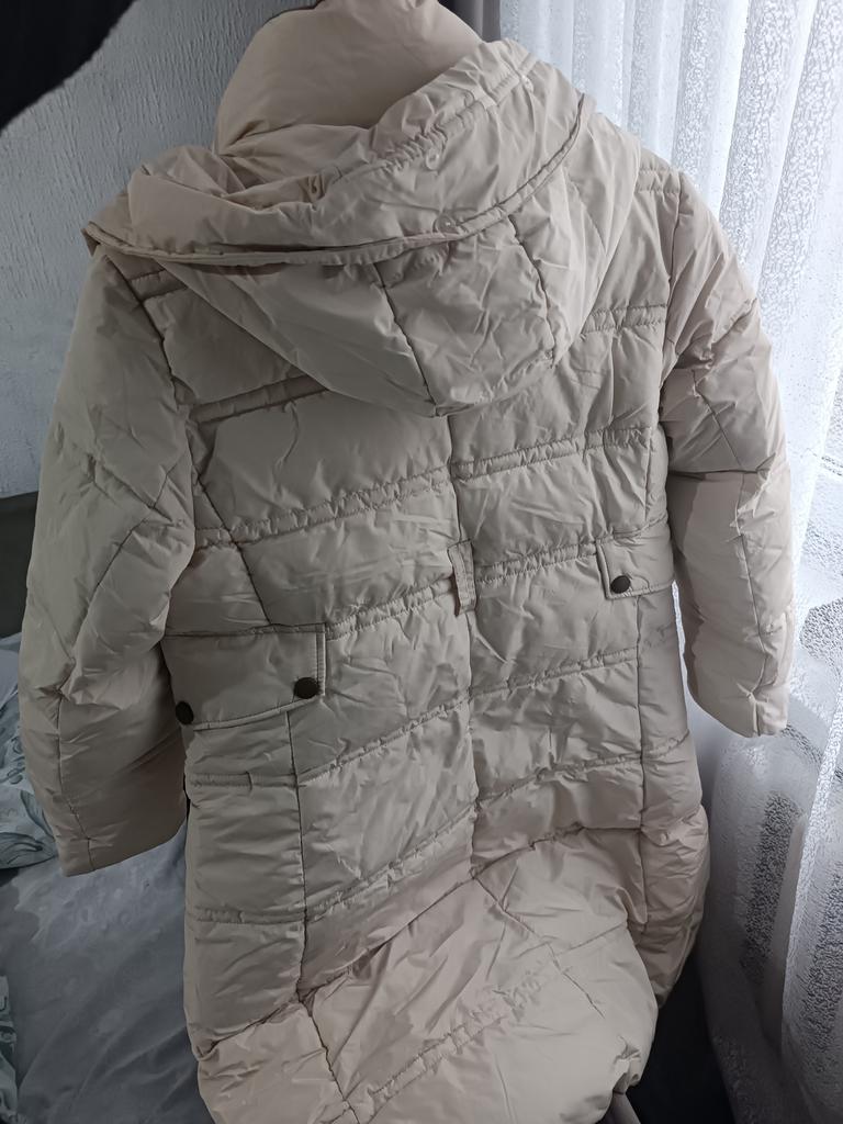 За такую цену хорош. И это не пуховик и синтепоновое пальто Но это даже плюс. Не будет слёживаться и скатываться . Есть конечно и недочеты показывала на фото торчат нитки и не все стежки ровные. Как и советовали другие покупатели купила на 2 размера больше своего . Не прогадала. Он мне еле в аккурат. Фиксаторы шнурка в капюшоне я свои поставила.