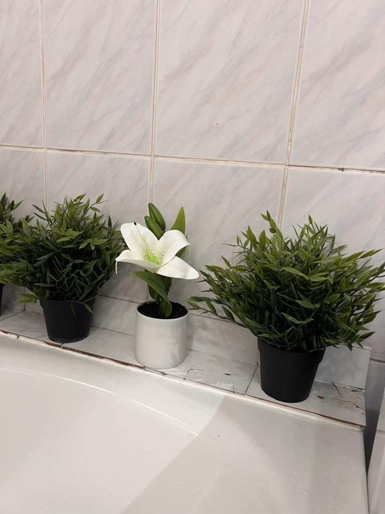 Красивый горшочек с цветком для декора ванны