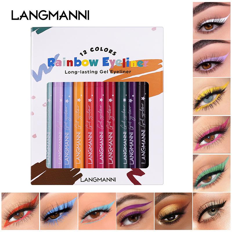 LANGMANNI 12-цветная подводка для глаз, удерживающая макияж, без ореола, набор матовых цветных подводок для глаз