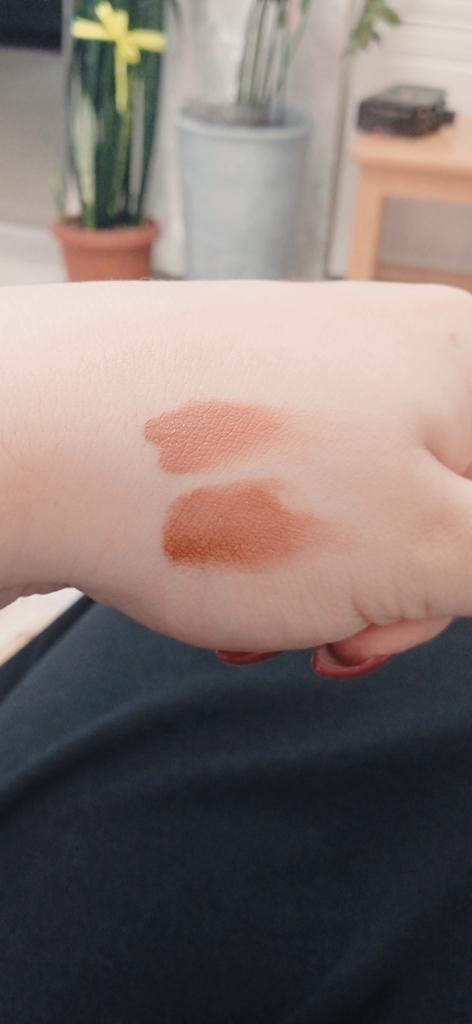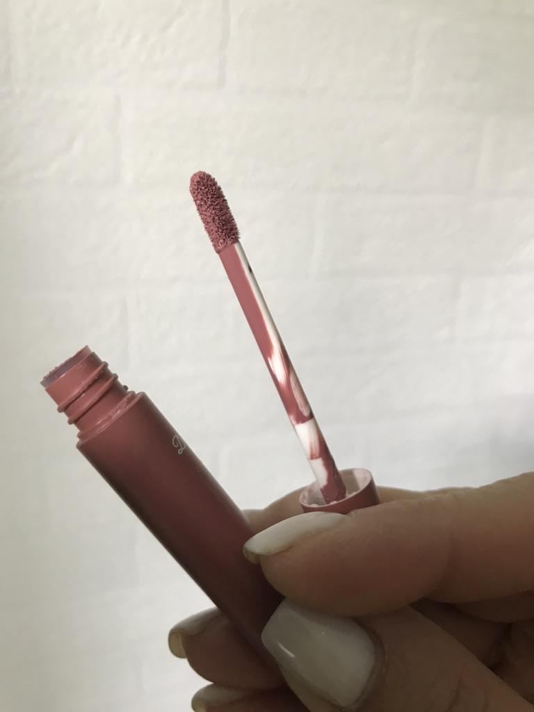 Матовая помада. Цвет как на картинке. Имеет приятный запах. Приятно ложится, но так как она жидкая, то при нанесении надо быть осторожнее. После после она засыхает. Легко стирается и соответственно держится не так долго. Если не пить и не есть, то продержится дольше.
