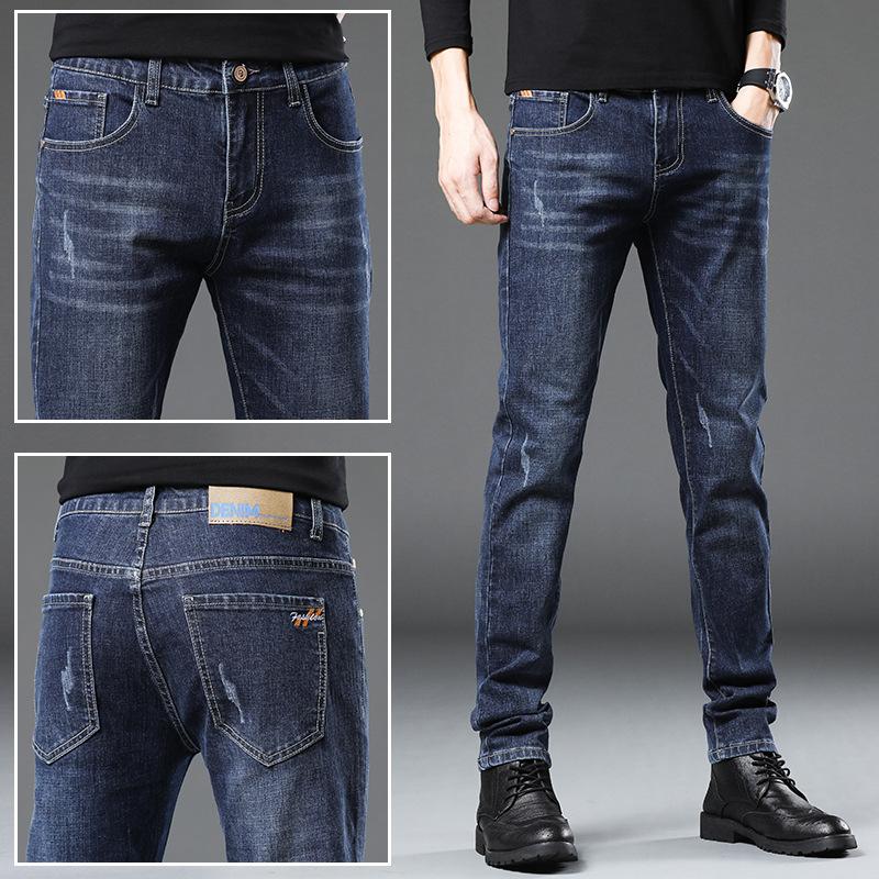 Мужские джинсы High Street Весна и осень Мужские брюки Повседневные мужские модели Tide Черные эластичные брюки для мальчиков Весна Маленькие брюки Осень