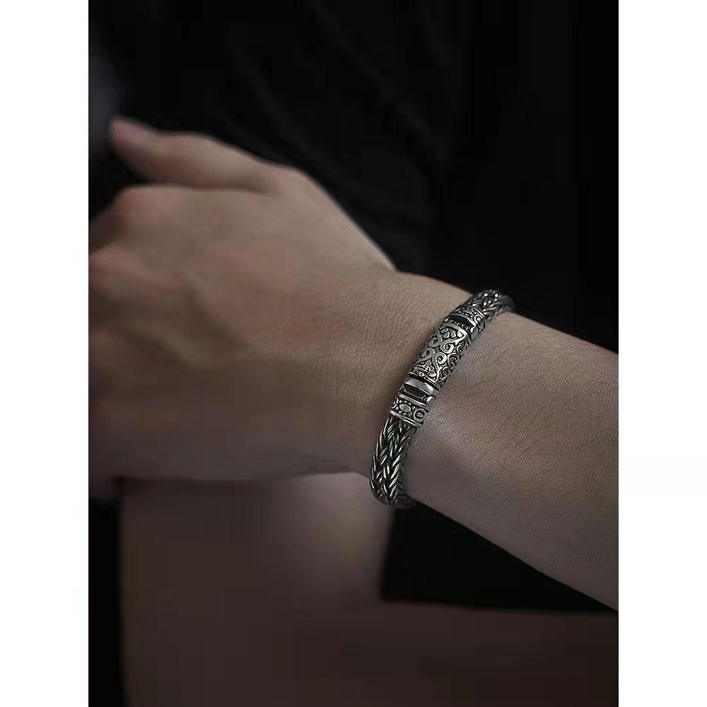 Оригинальный браслет ручной работы с надписью, тайский ретро, модный мужской индивидуальный толстый браслет
