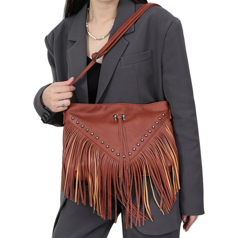 Дизайнерская сумка из искусственной кожи с заклепками, мягкая кожаная сумка для женщин, повседневная сумка с кисточками и заклепками, сумка через плечо, диагональная сумка, женская сумка, большая летняя сумка