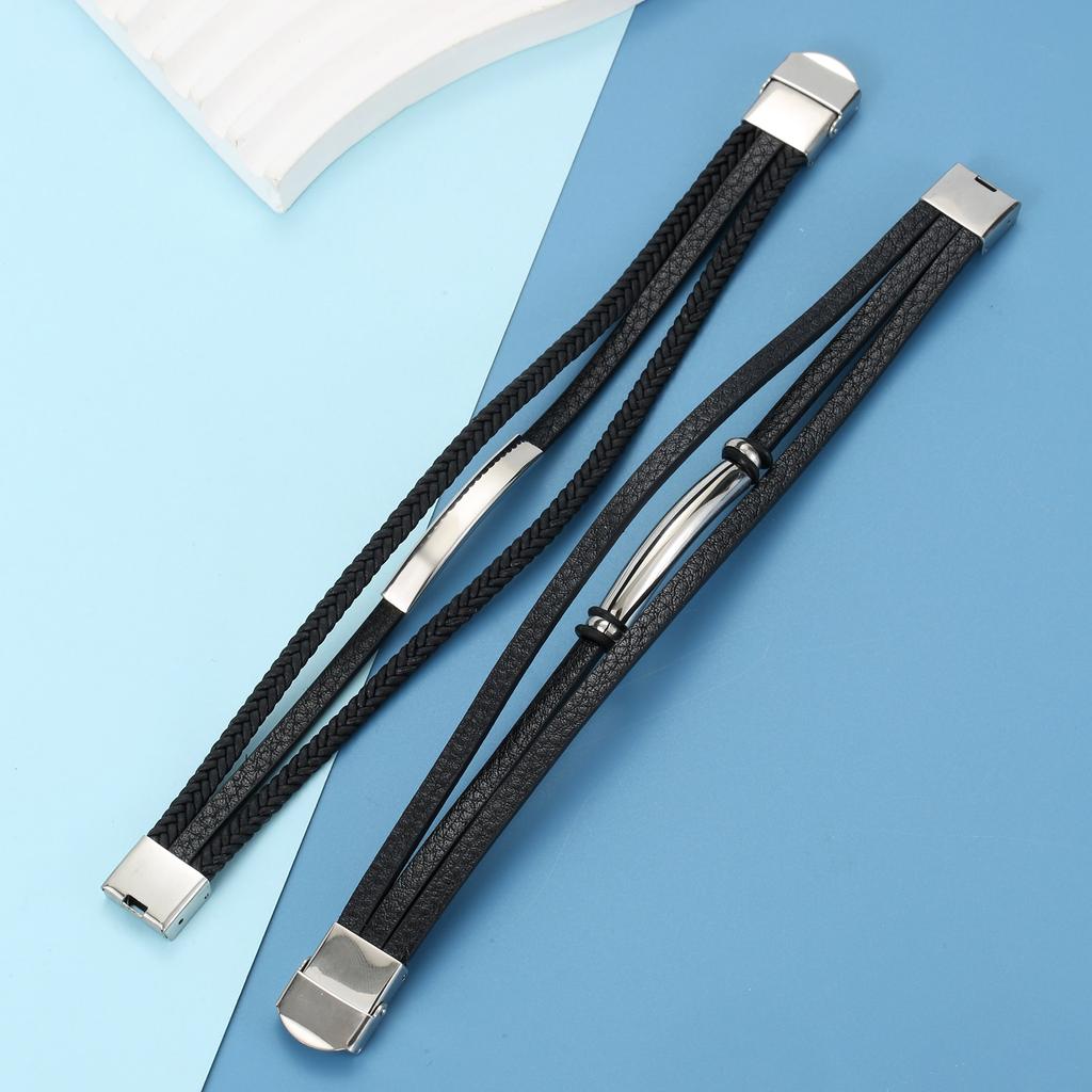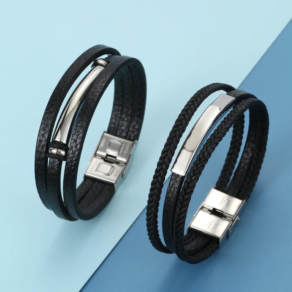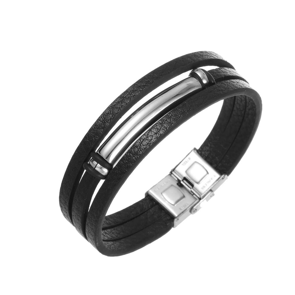 Очаровательные ювелирные изделия из нержавеющей стали, кожаный гладкий браслет для мужчин
