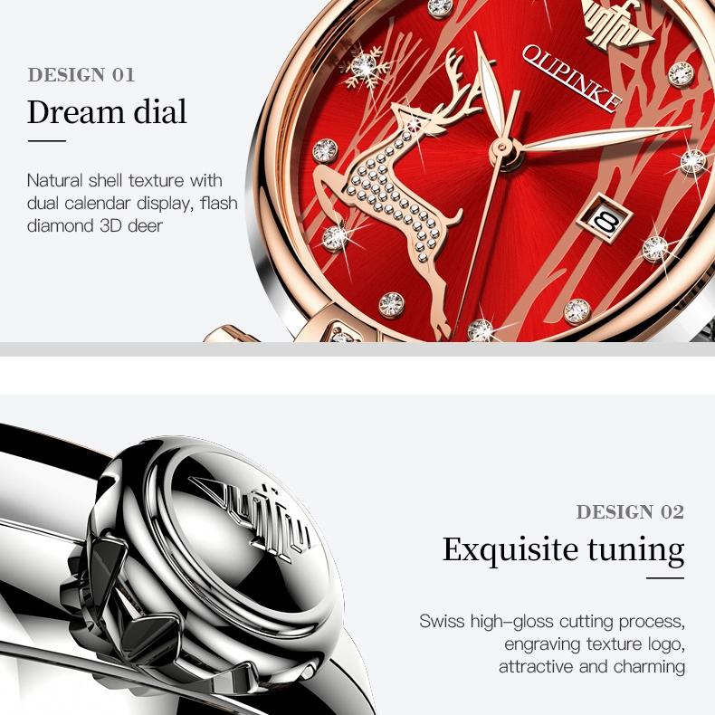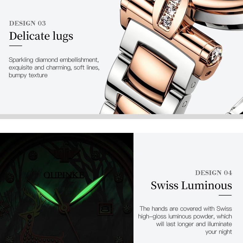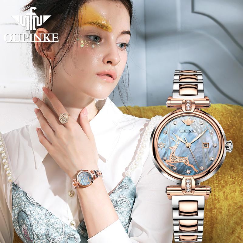 OUPINKE Часы Модный бренд Автоматические механические часы Водонепроницаемые женские часы