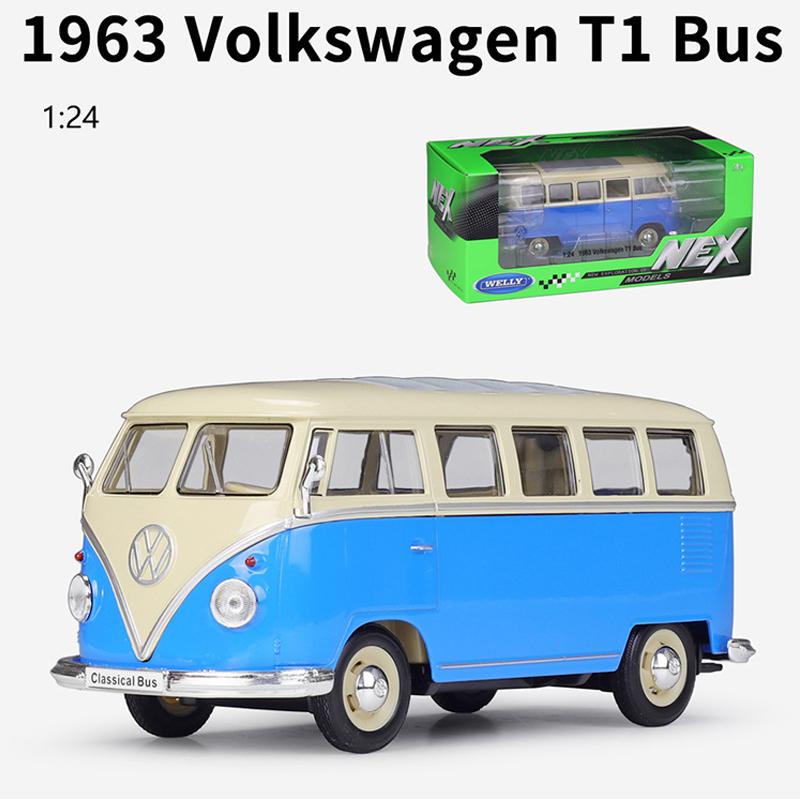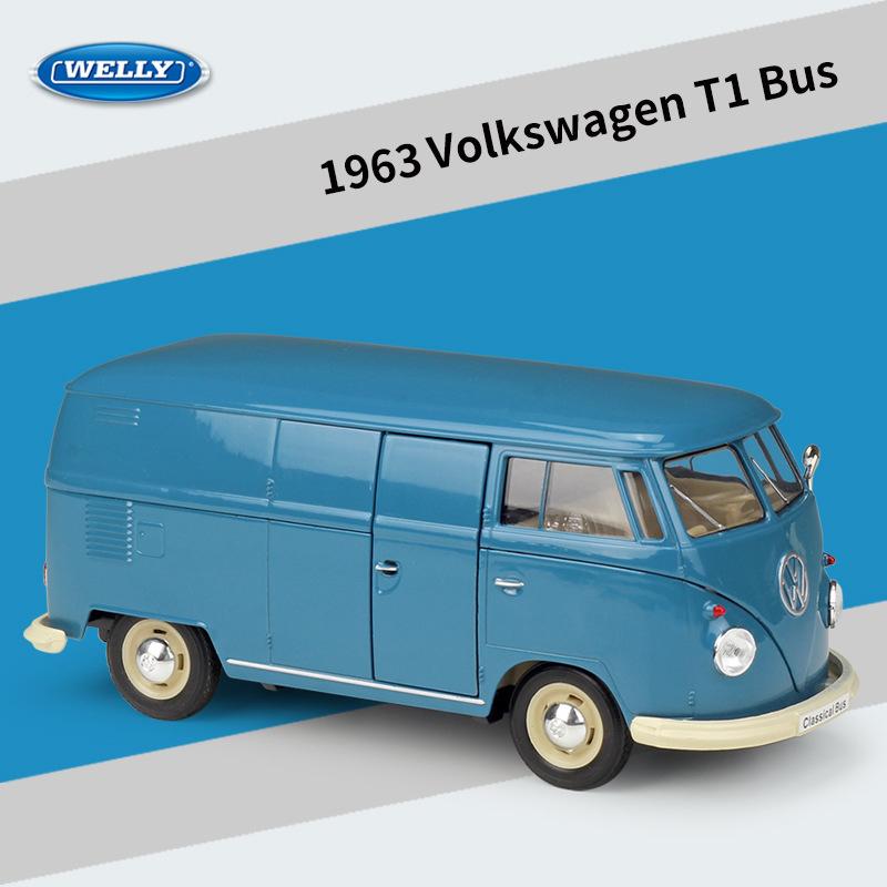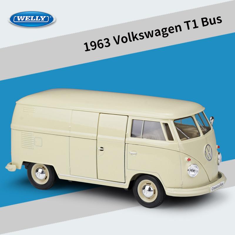 Масштаб 1/24 Welly 1963 Volkswagen T1 Bus, модель автомобиля из сплава, литье под давлением, металлические игрушечные автомобили, модель автомобиля, коллекция высокой имитации, детские подарки