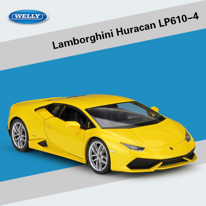 Масштаб 1/24 Welly Lamborghini Huracan LP610-4, модель автомобиля из сплава, литье под давлением, металлические игрушечные автомобили, модель автомобиля, коллекция высокой имитации, детские подарки