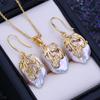 LSOOYH Ожерелье из натурального пресноводного жемчуга в стиле барокко, квадратный кулон, модные серьги-подвески для женщин, наборы ювелирных украшений с жемчугом