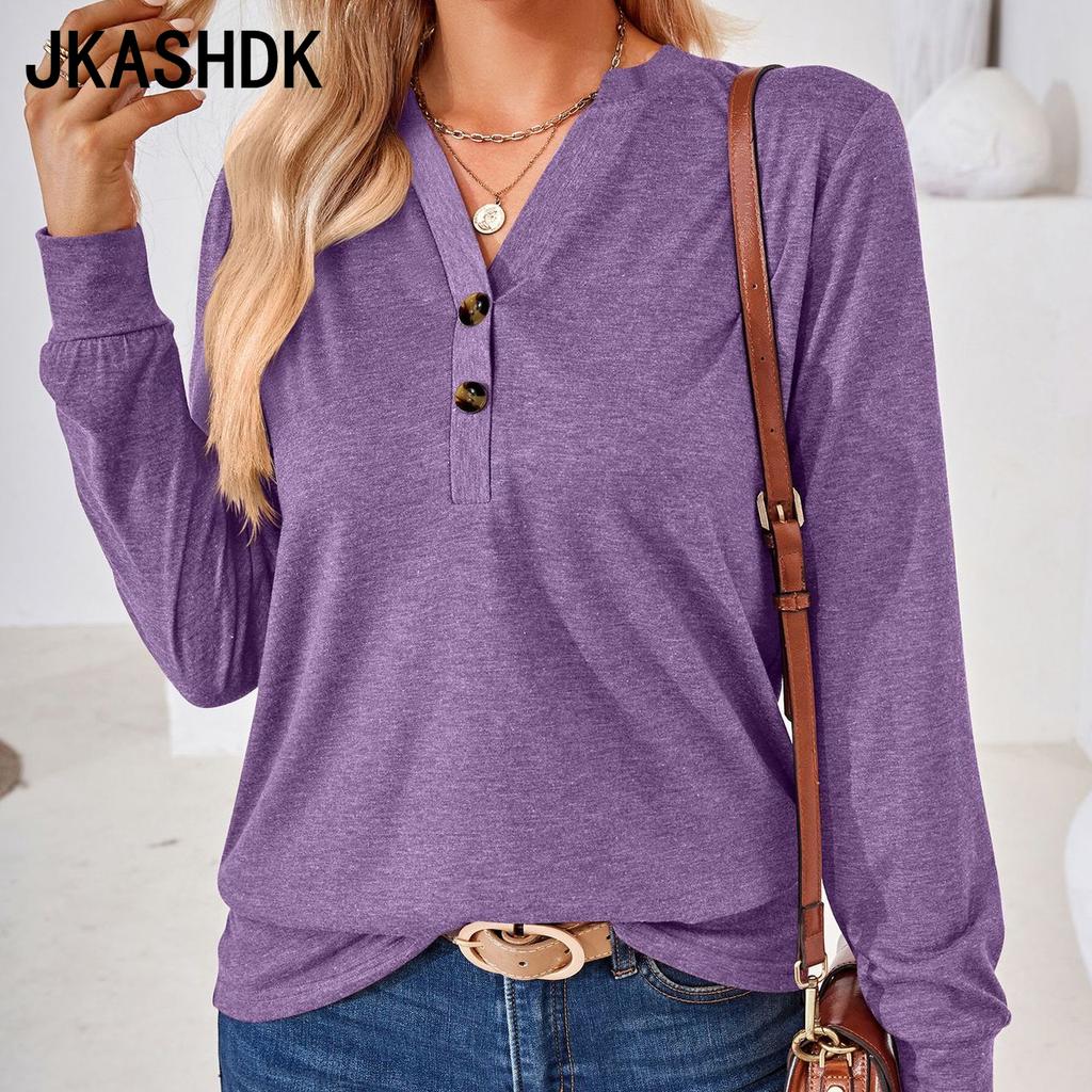 JKASHDK Женские модные повседневные весенне-осенние однотонные блузки и рубашки с v-образным вырезом и длинным рукавом с принтом