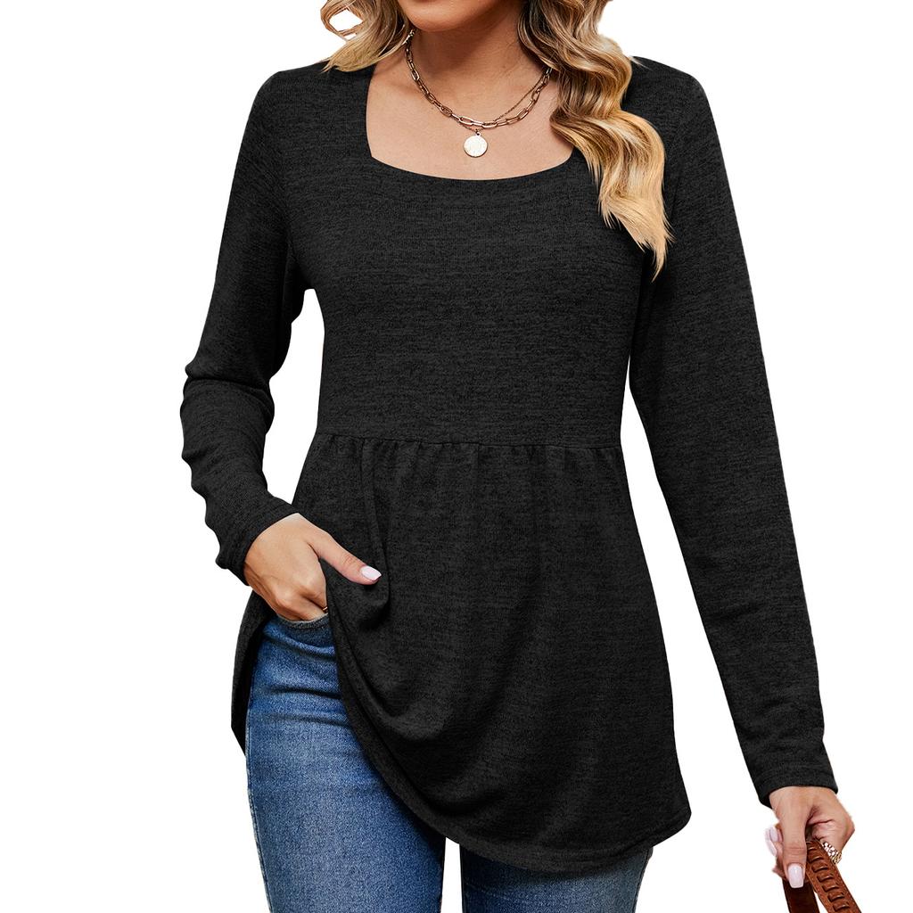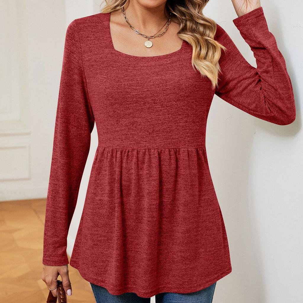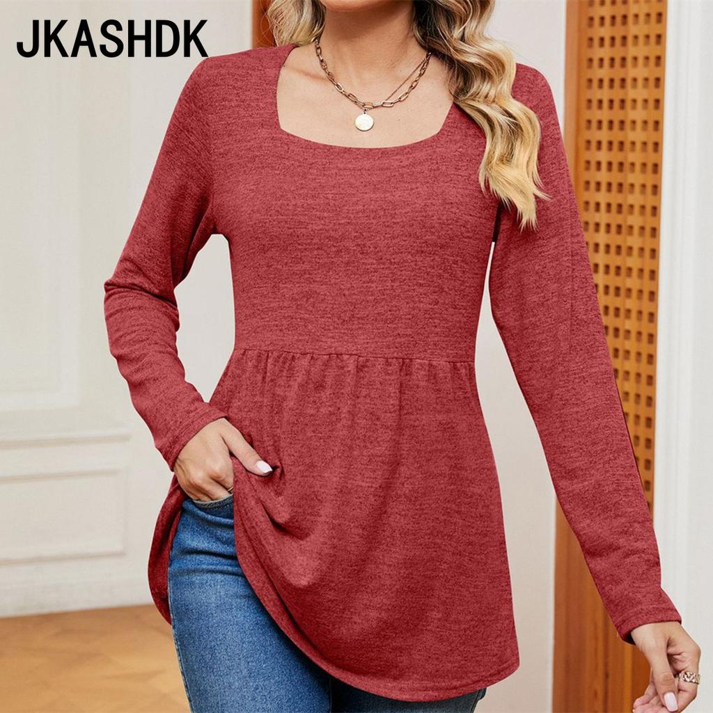 JKASHDK Женские модные повседневные весенне-осенние однотонные топы с квадратным воротником и длинными рукавами, блузки и рубашки с принтом
