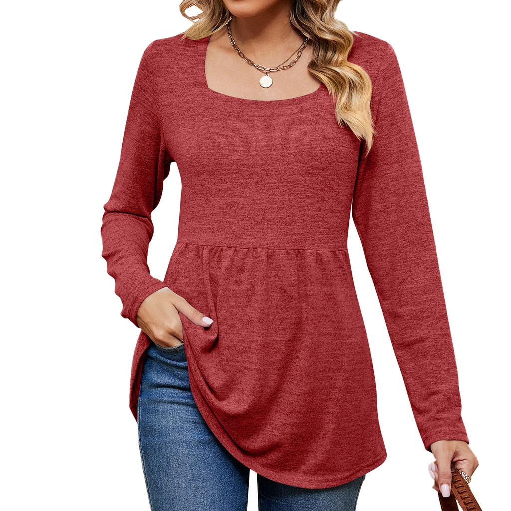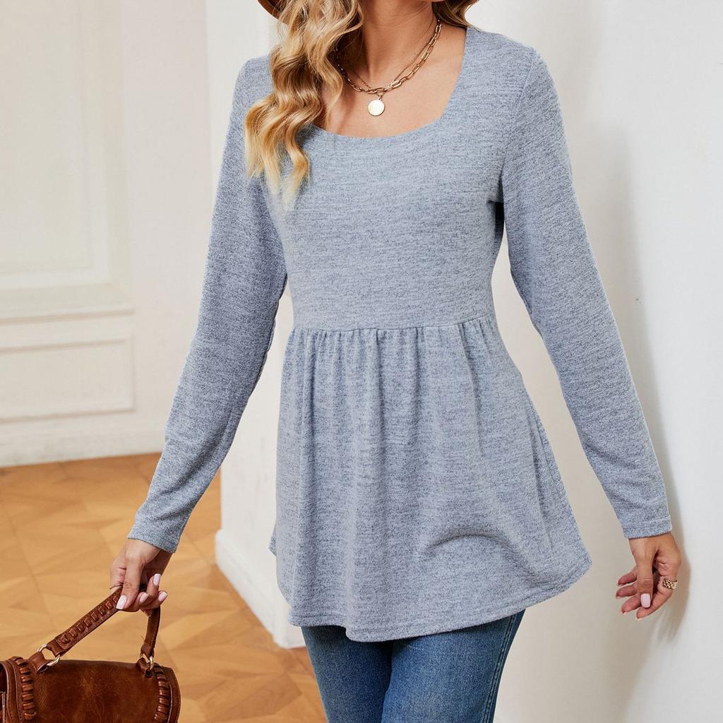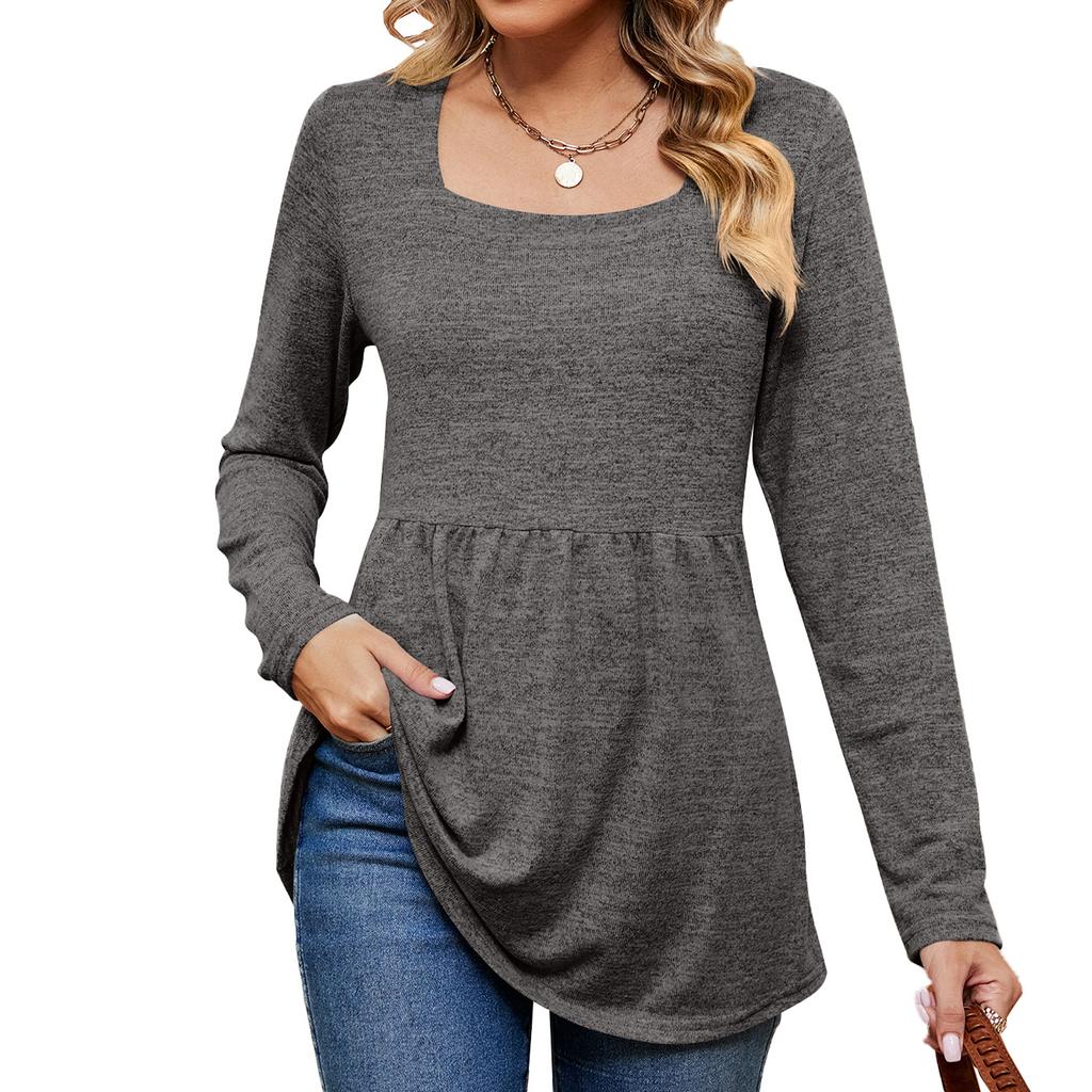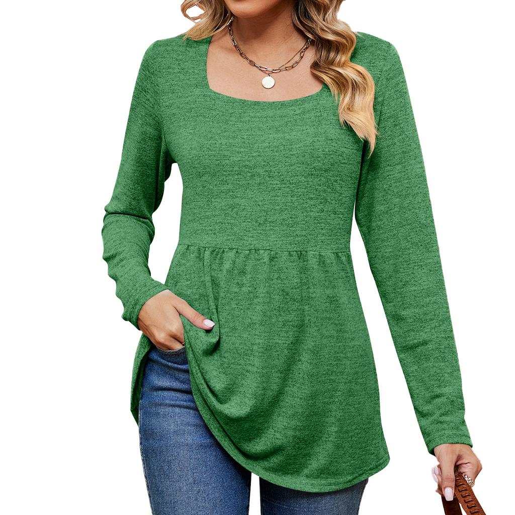 JKASHDK Женские модные повседневные весенне-осенние однотонные топы с квадратным воротником и длинными рукавами, блузки и рубашки с принтом