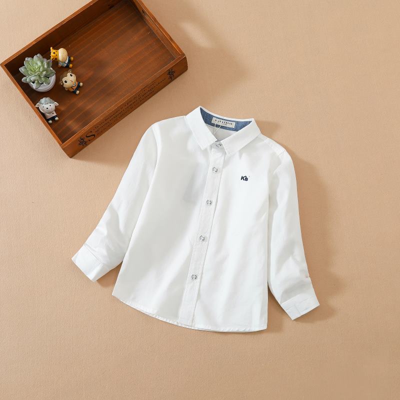 Модная одежда для мальчиков, формальные детские рубашки с длинными рукавами из хлопка, однотонная хлопковая детская одежда с отложным воротником для детей 6–14 лет