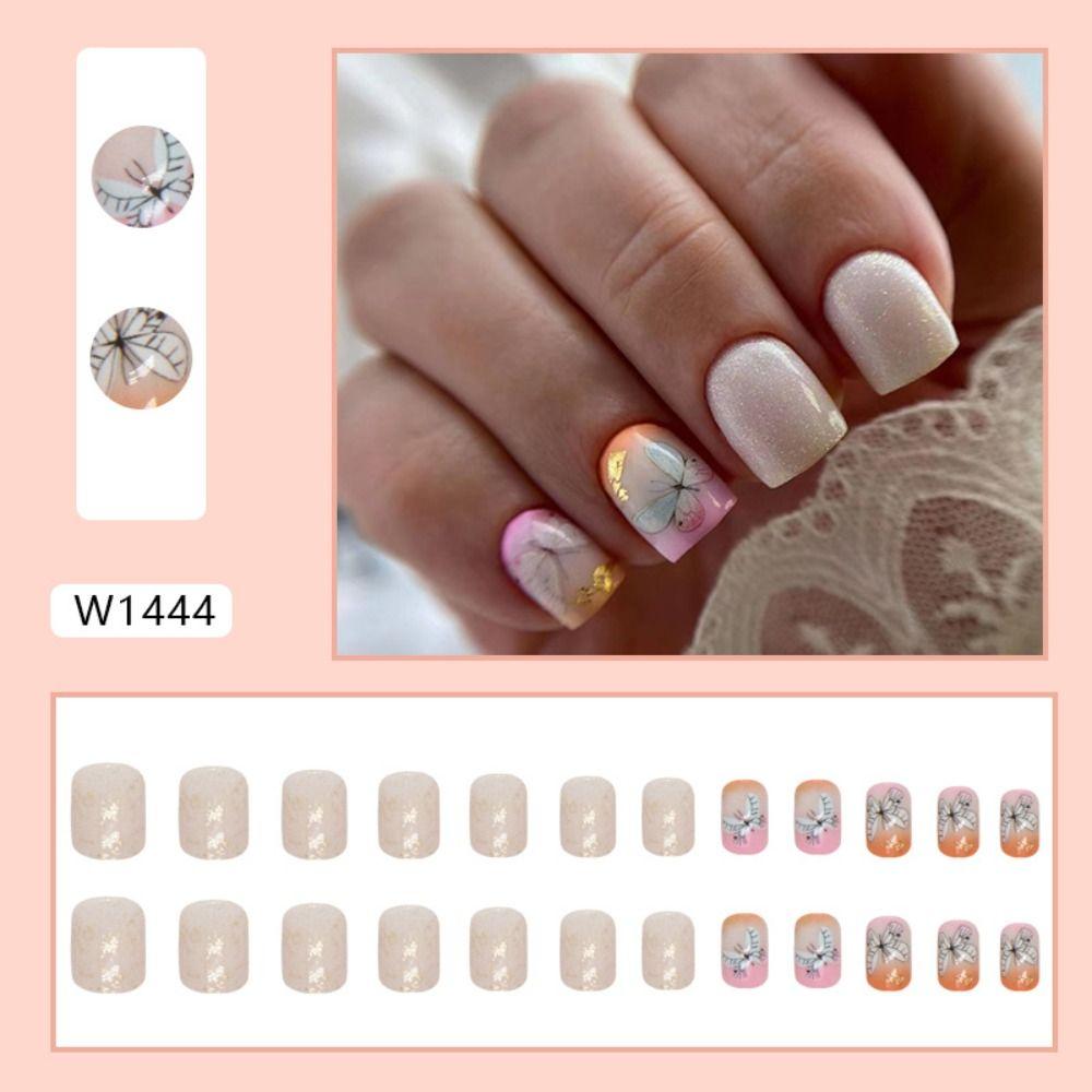 Короткие круглые накладные ногти Французские типсы для ногтей Модные накладные ногти для своими руками