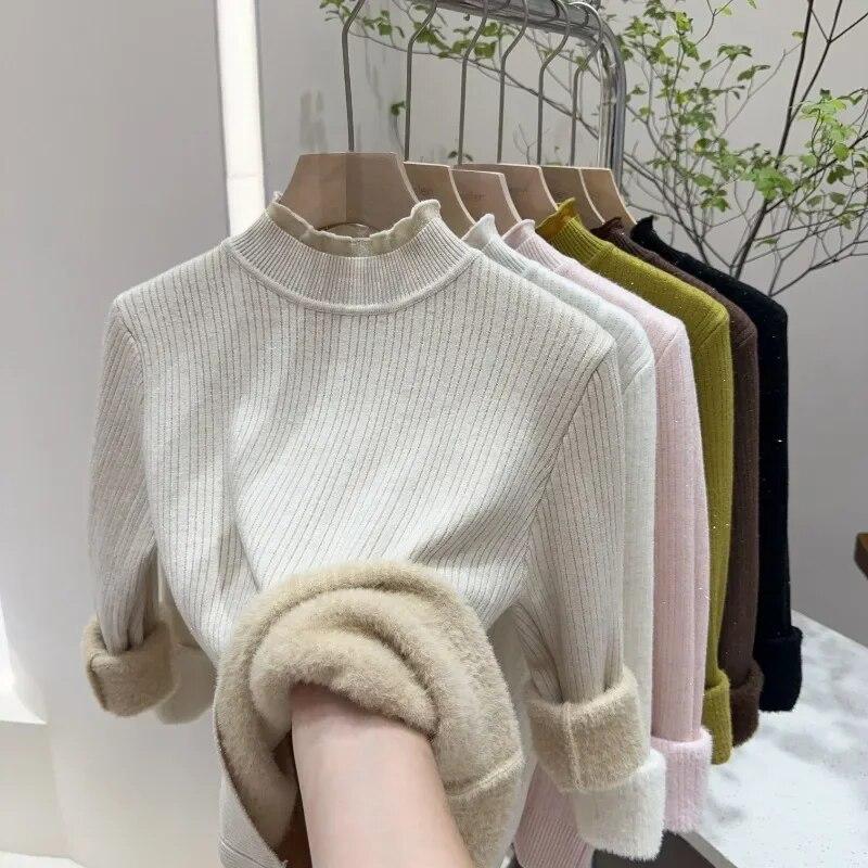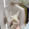 Осенне-зимние толстые плюшевые бархатные свитера, женские кружевные вязаные джемперы с полувысоким воротником, повседневные однотонные теплые пуловеры 29787