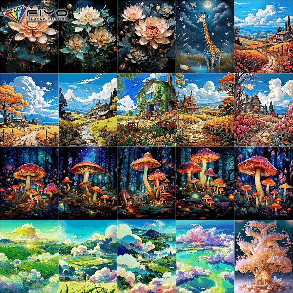 Алмазная картина, полная дрель, грибной пейзаж, круглая алмазная живопись, ручная работа, олень, животное, сделай сам, алмазная мозаика, картина, украшение дома