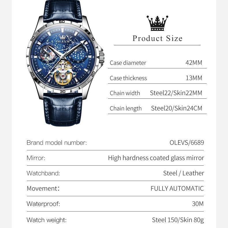 OLEVS Часы Модные водонепроницаемые светящиеся механические часы Мужские часы Мужские часы