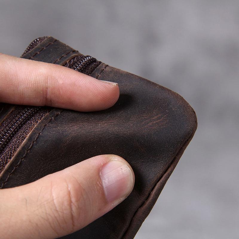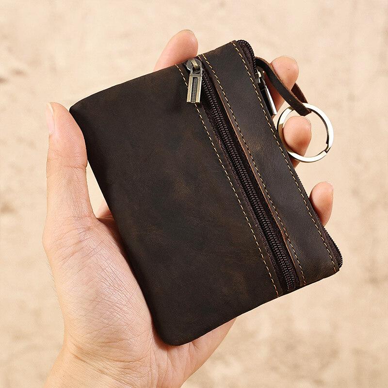 Кожаная короткая маленькая сумка в стиле ретро Crazy Horse, держатель для кредитных карт, легкие портативные сумки для хранения монет, тонкий кошелек на молнии