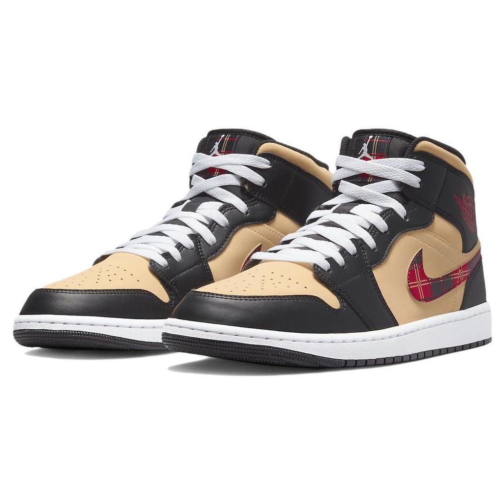 Мужские кроссовки Air Jordan 1 Mid SE Tartan Swoosh Коричневые и черные с кунжутом DZ5329-001