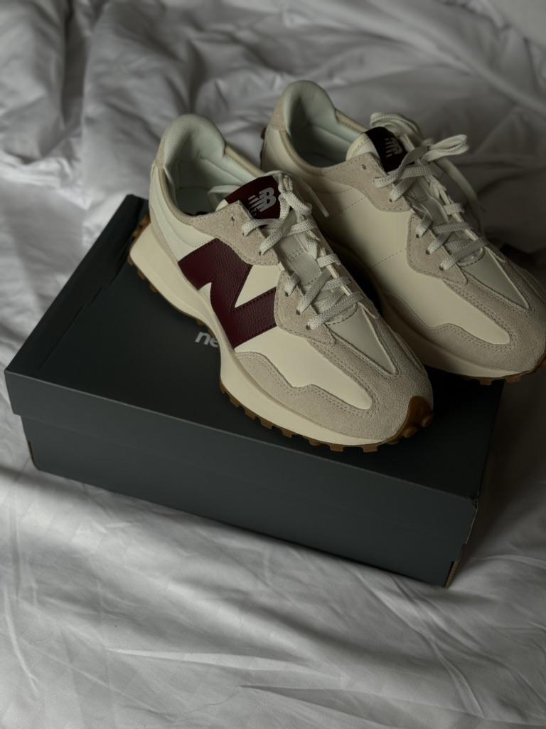 New Balance 327 Белые Темно-красные женские кроссовки Светло-серые WS327KA — купить товар онлайн с бесплатной доставкой по всему миру!
