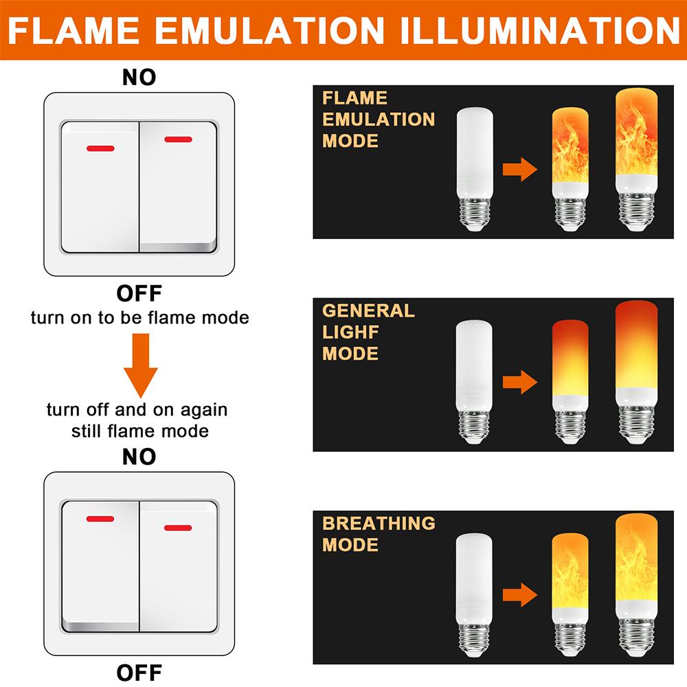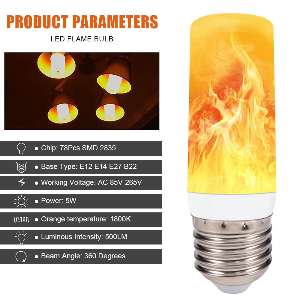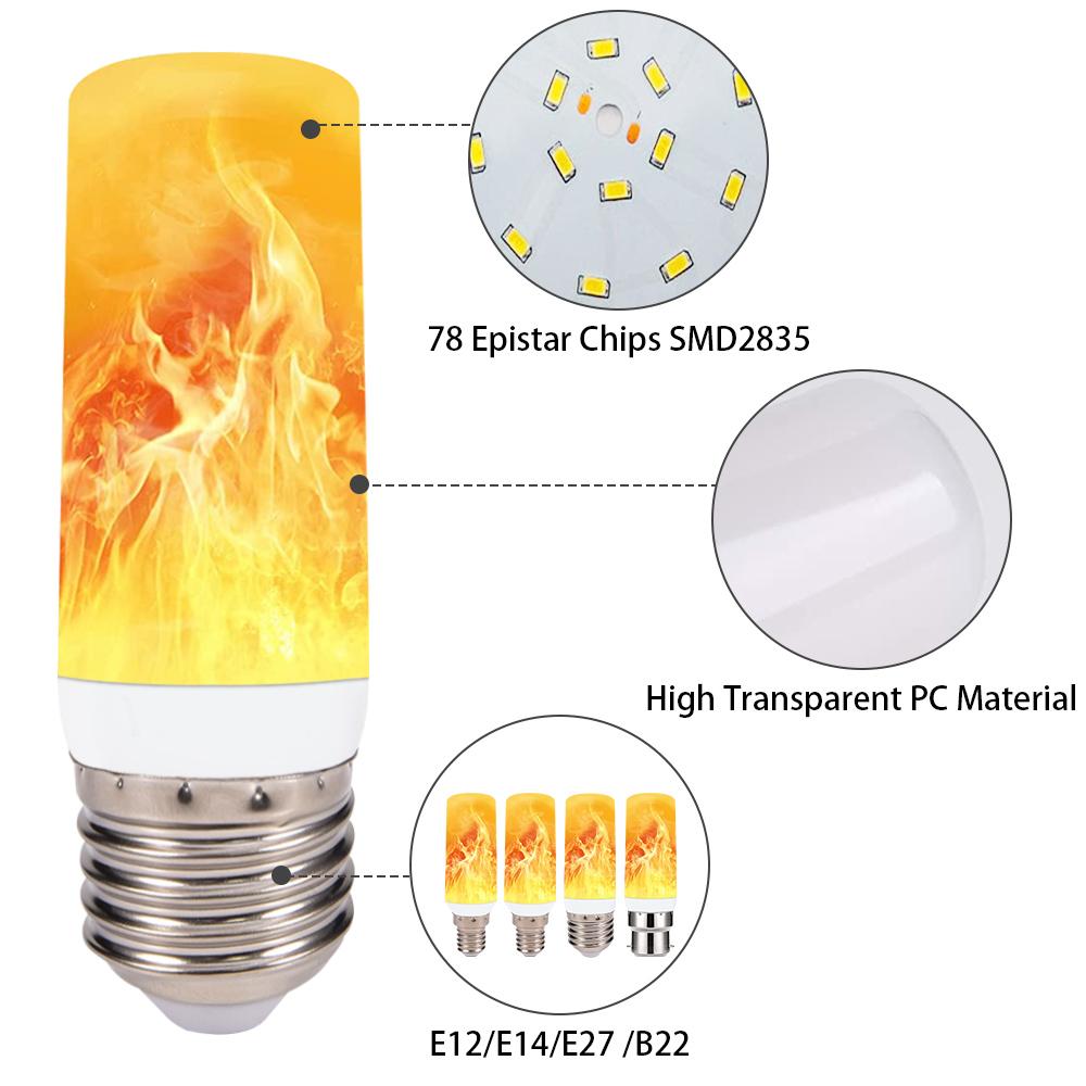 E12 E14 E27 B22 Светодиодные лампочки с эффектом пламени, 3 режима, мерцающая декоративная лампа