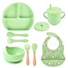 9 шт., набор детской посуды, пищевая силиконовая детская посуда для детей, миска для нагрудника с милым принтом, нескользящие тарелки с присоской BPAFREE