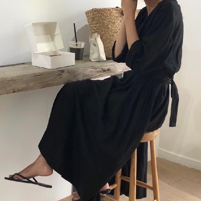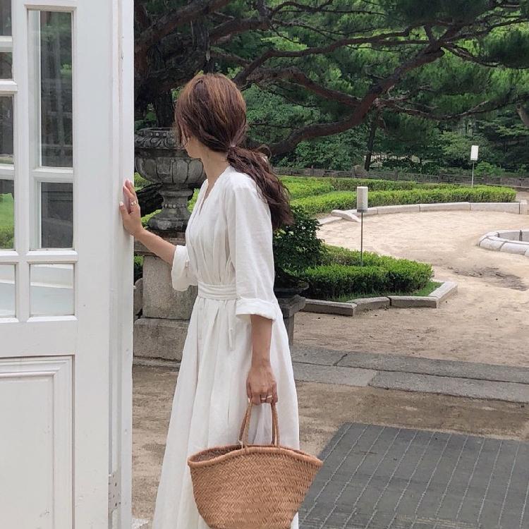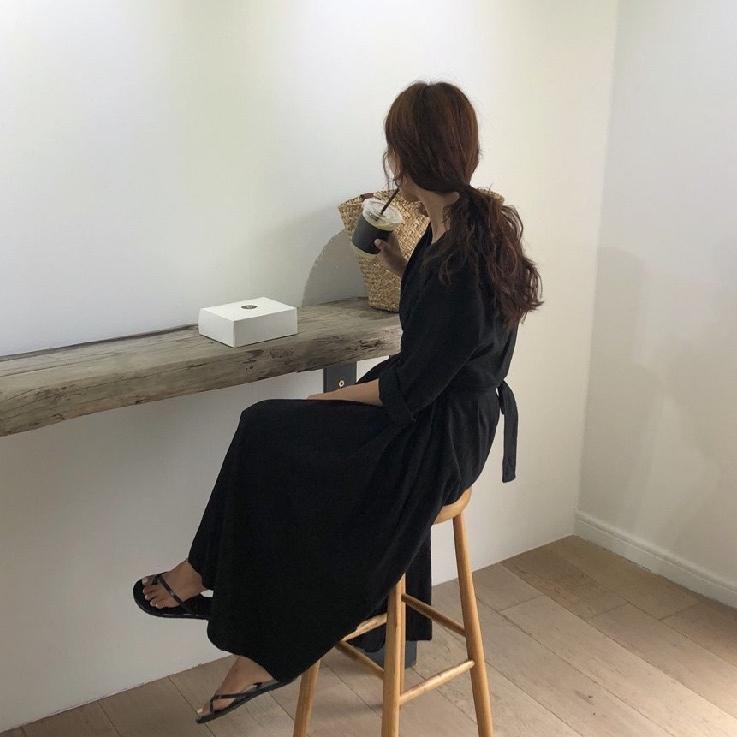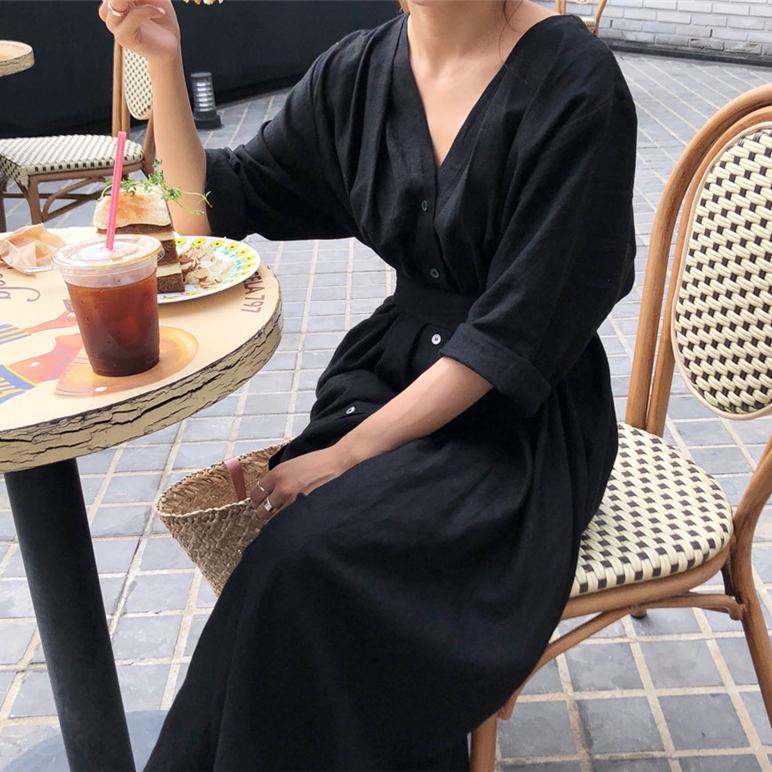 Платье женское, весенне-осеннее, корейское, модное, модное, свободное, с длинными рукавами, однотонное, плиссированное, льняное платье-рубашка, женская одежда