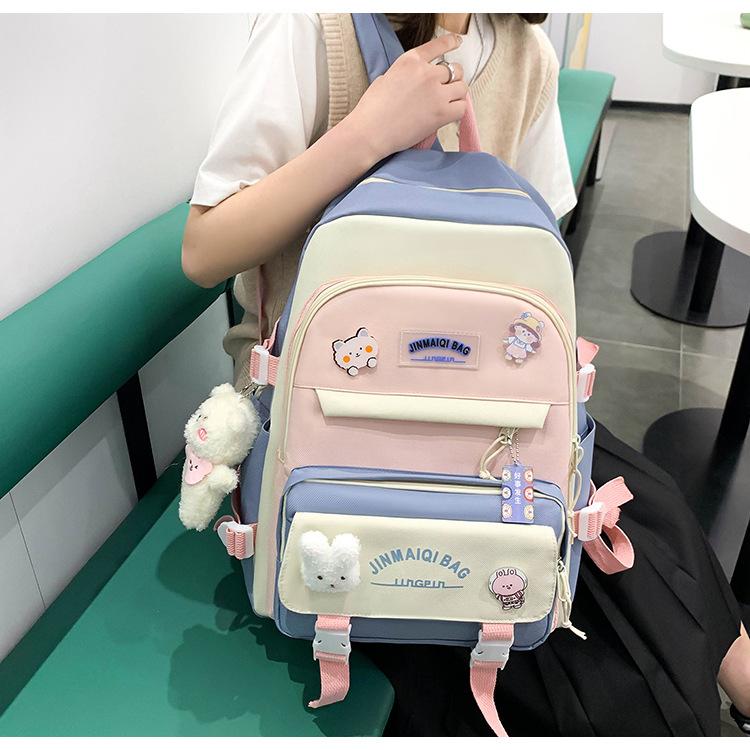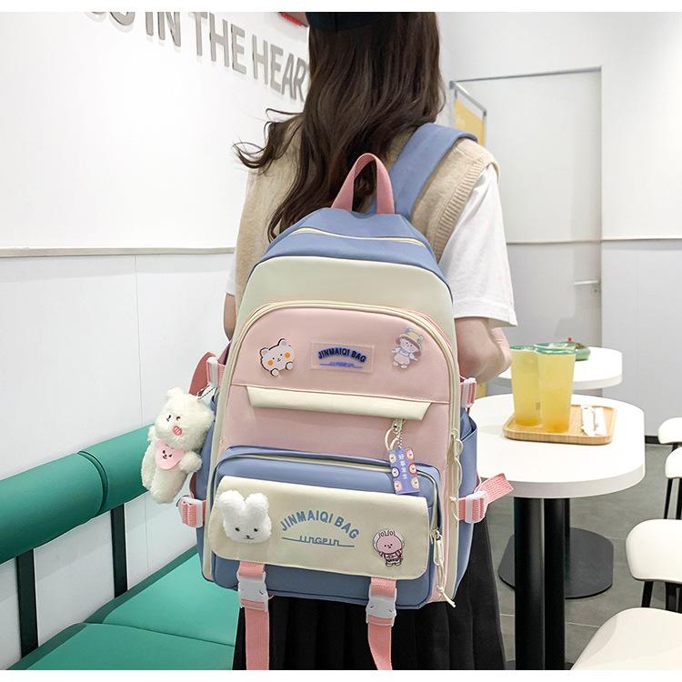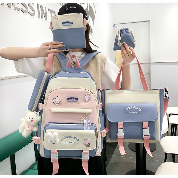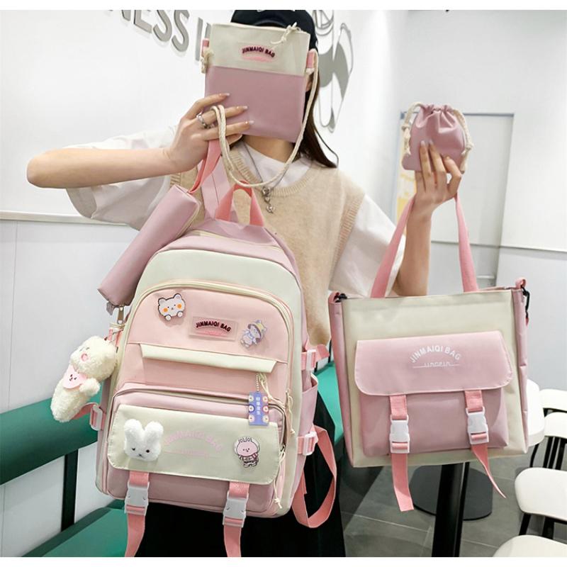 Комплект из 5 предметов, школьный рюкзак для девочек, милый мультяшный рюкзак для школьников младших классов, модная парусиновая сумка-мессенджер для учебы, 3, 5, 6 классов