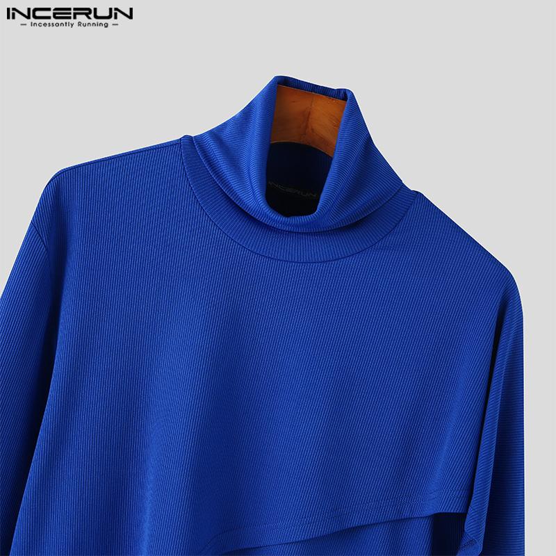 INCERUN Осенние вязаные эластичные свитера с высоким воротником и запахом в полоску