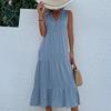 Летнее женское платье трапециевидной формы длиной до колена с V-образным вырезом без рукавов