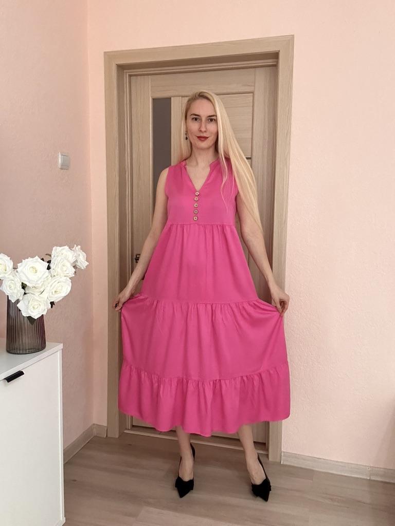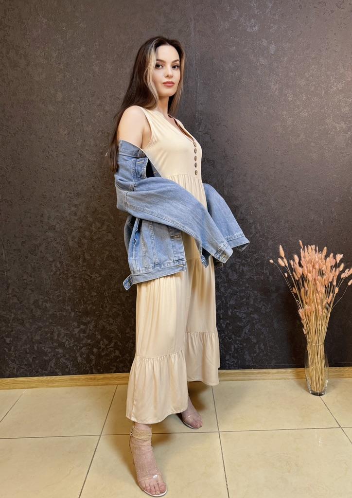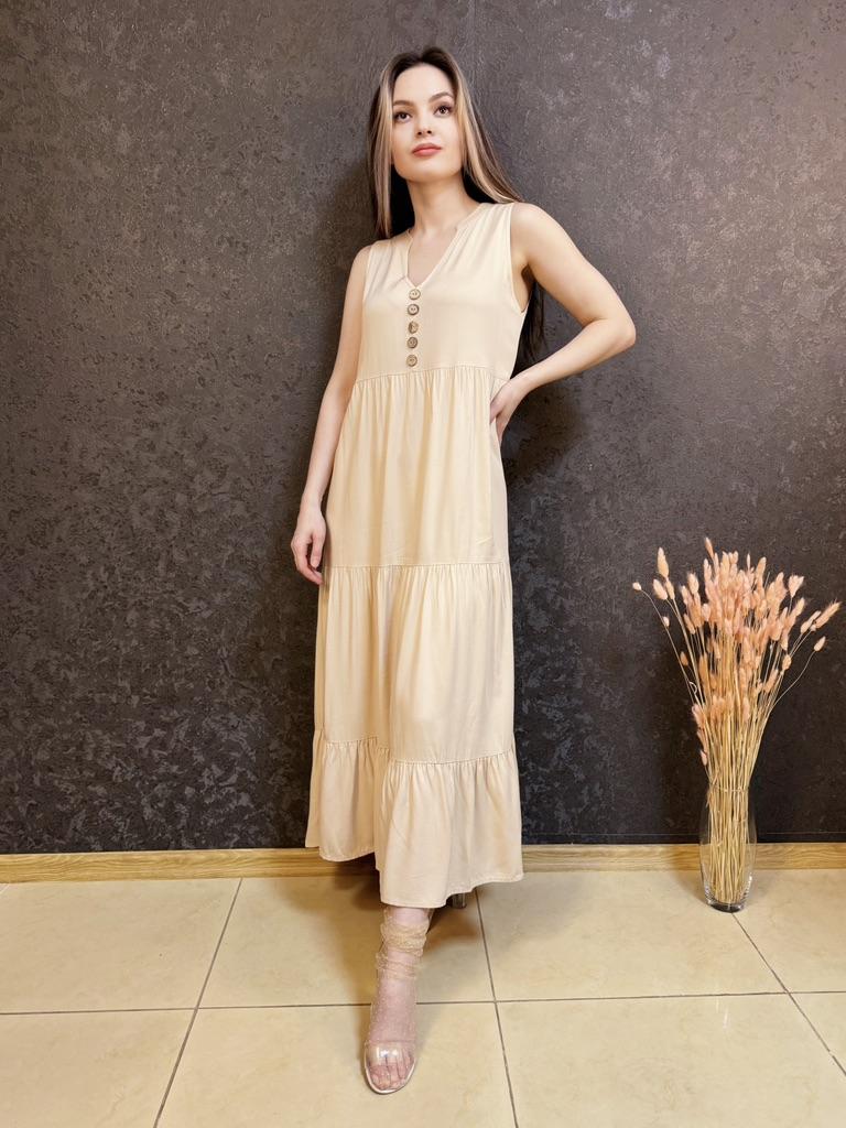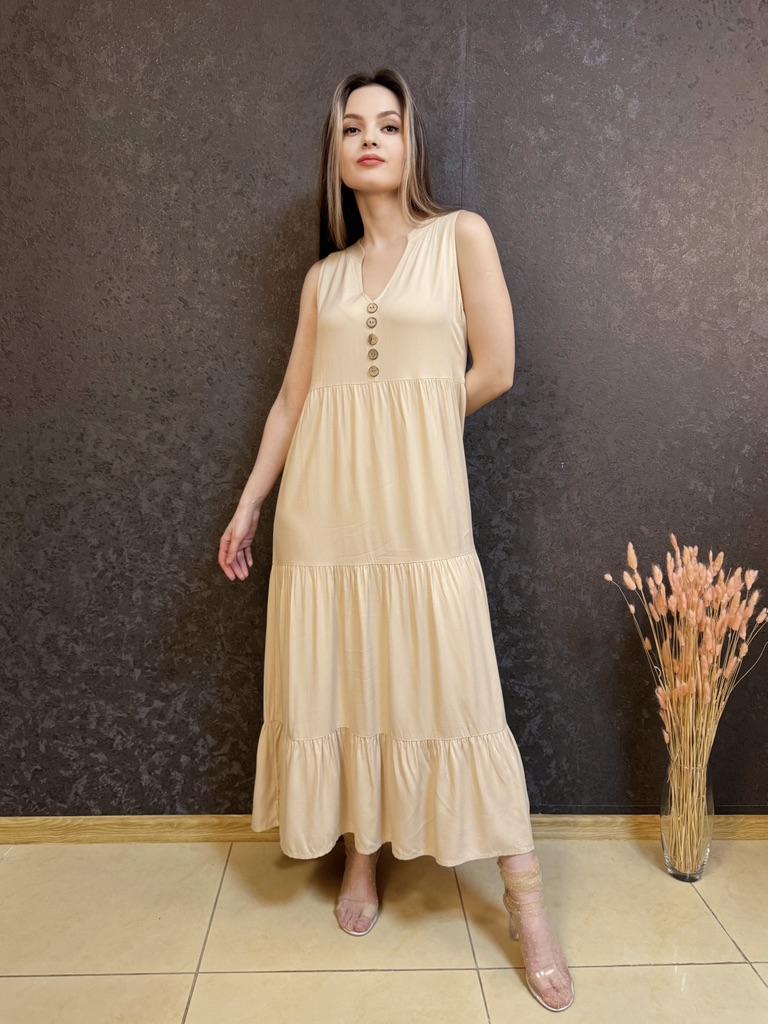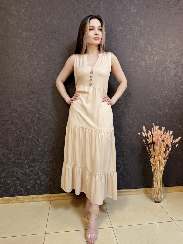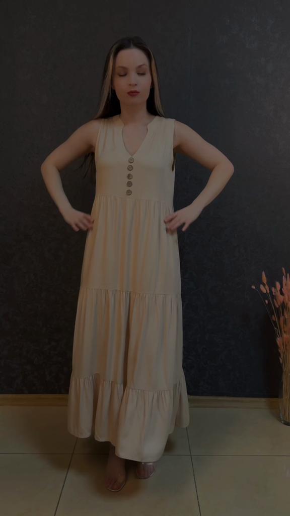 Бежевое летнее платье из приятной к телу вискозы. Для тех, кто любит комфорт в жаркую погоду. 🔸У продавца вы найдете эту модель в нескольких расцветках, в размерах: S-XL. На мне М. - Замеры платья: Длина - 125 см ОГ - 100 см ОТ - 126 см ОБ - 128 см - Мои параметры: ОГ - 86 см ОТ - 67 см ОБ - 93 см Длина рукава - 52 см Ширина плеч - 37 см Рост 164 см 🔸Материал приятный к телу, не электризуется. Такая ткань очень хороша для жаркой погоды. 🔸Вырез V-образный. Посередине пуговки для декора. Юбка ярусная. 🔸Платье свободного кроя. 🔸К пошиву никаких претензий. Полное соответствие цены и качества. Рекомендую 👍 Ставлю ⭐⭐⭐⭐⭐ Большое спасибо продавцу ❤️ и Joom ❤️