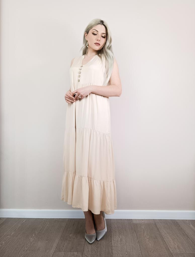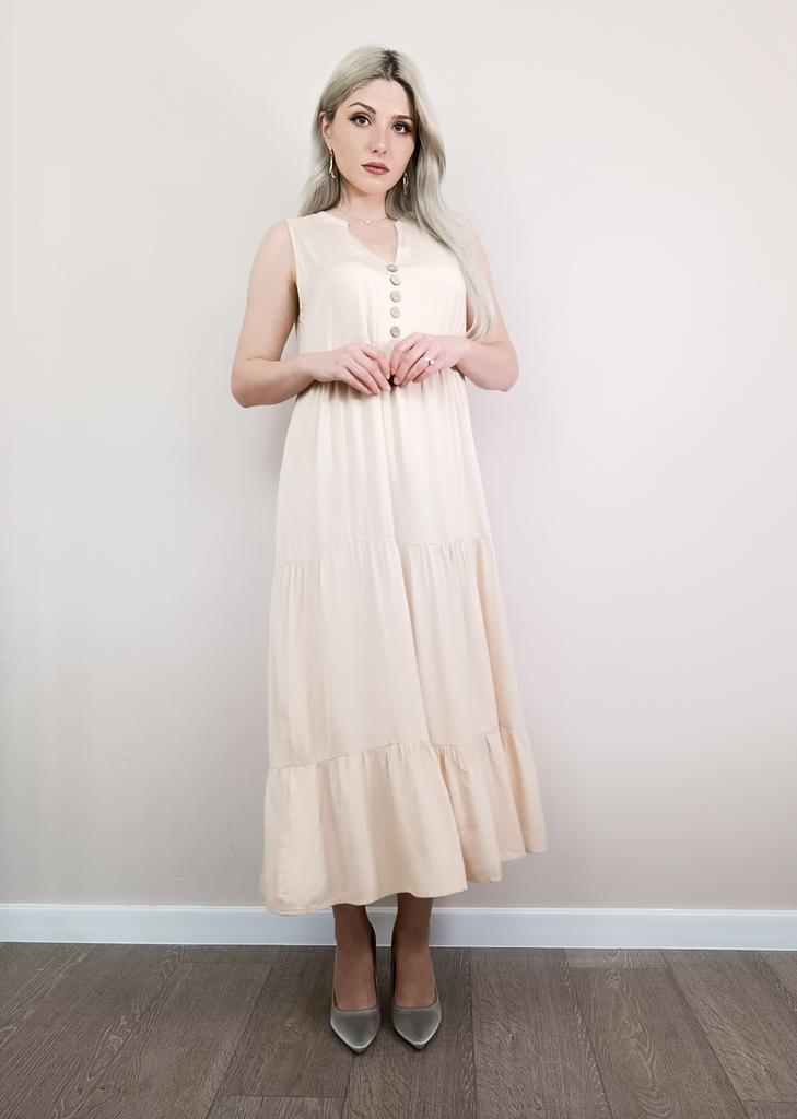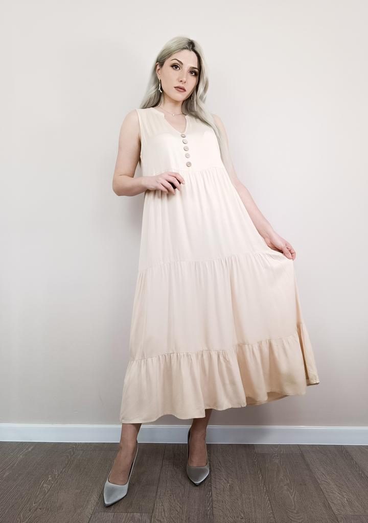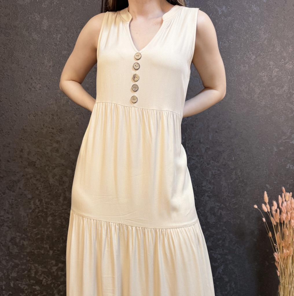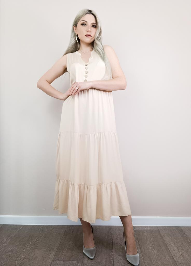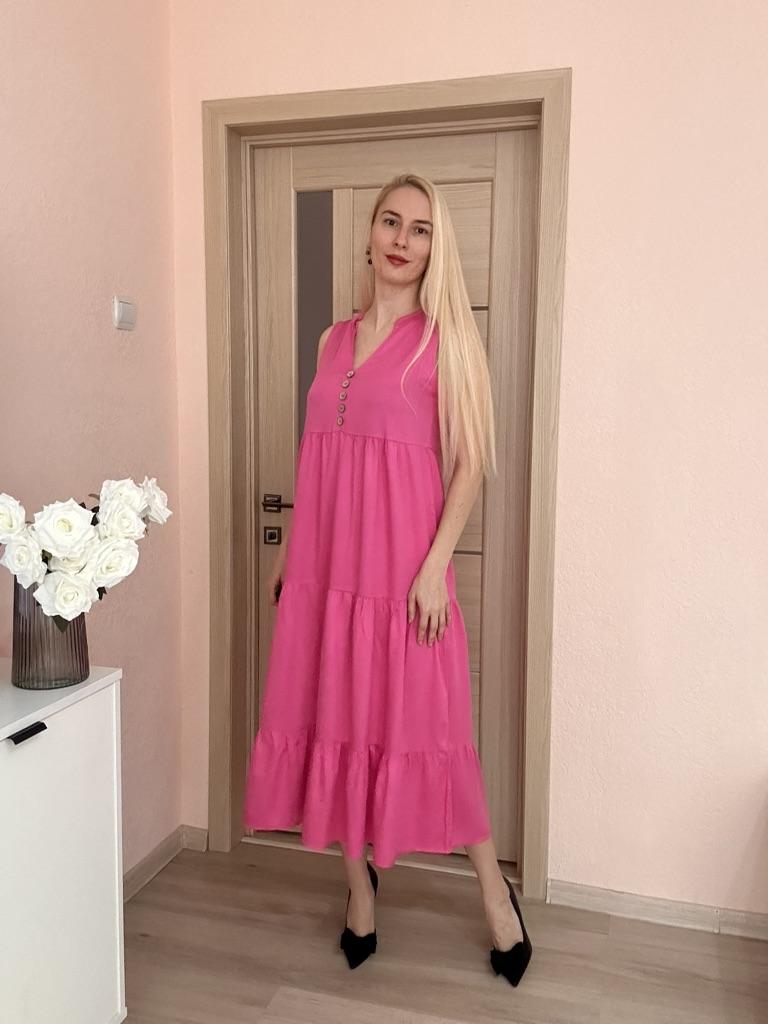 Бежевое летнее платье из приятной к телу вискозы. Для тех, кто любит комфорт в жаркую погоду. 🔸У продавца вы найдете эту модель в нескольких расцветках, в размерах: S-XL. На мне М. - Замеры платья: Длина - 125 см ОГ - 100 см ОТ - 126 см ОБ - 128 см - Мои параметры: ОГ - 86 см ОТ - 67 см ОБ - 93 см Длина рукава - 52 см Ширина плеч - 37 см Рост 164 см 🔸Материал приятный к телу, не электризуется. Такая ткань очень хороша для жаркой погоды. 🔸Вырез V-образный. Посередине пуговки для декора. Юбка ярусная. 🔸Платье свободного кроя. 🔸К пошиву никаких претензий. Полное соответствие цены и качества. Рекомендую 👍 Ставлю ⭐⭐⭐⭐⭐ Большое спасибо продавцу ❤️ и Joom ❤️