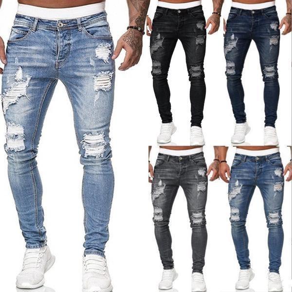 Модные джинсы, мужские узкие джинсовые брюки, мужские рваные брюки, уличная одежда, мужские джинсовые джинсы, брюки-карандаш — купить товар онлайн с бесплатной доставкой по всему миру!