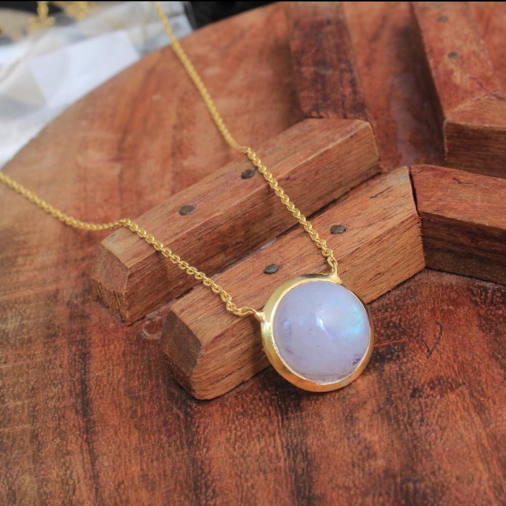 Ожерелье с лунным камнем, июньский камень, желтое золото, 100% серебро 925 пробы, ювелирные изделия ручной работы