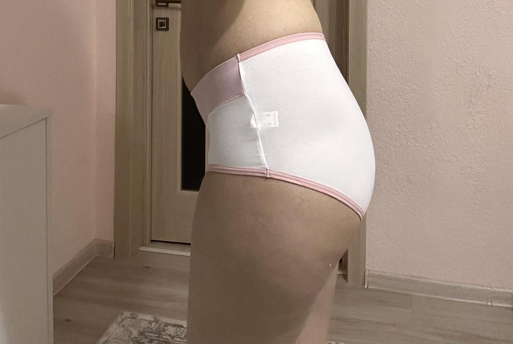 Хлопковые трусики с высокой посадкой. Взяла максимальный размер. На ОБ 96 село хорошо. Допускаю еще пару сантиметров в бедрах. Но если больше, мне кажется, будут очень плотно сидеть. Мимимишная расцветка. Симпатично, не инфантильно. Хотя, пожалуй, это субъективное мнение😊 Понравилось, что верх по передней части - вот та розовая вставка - двойной. Это помогает избежать скручивания и скатывания с живота.