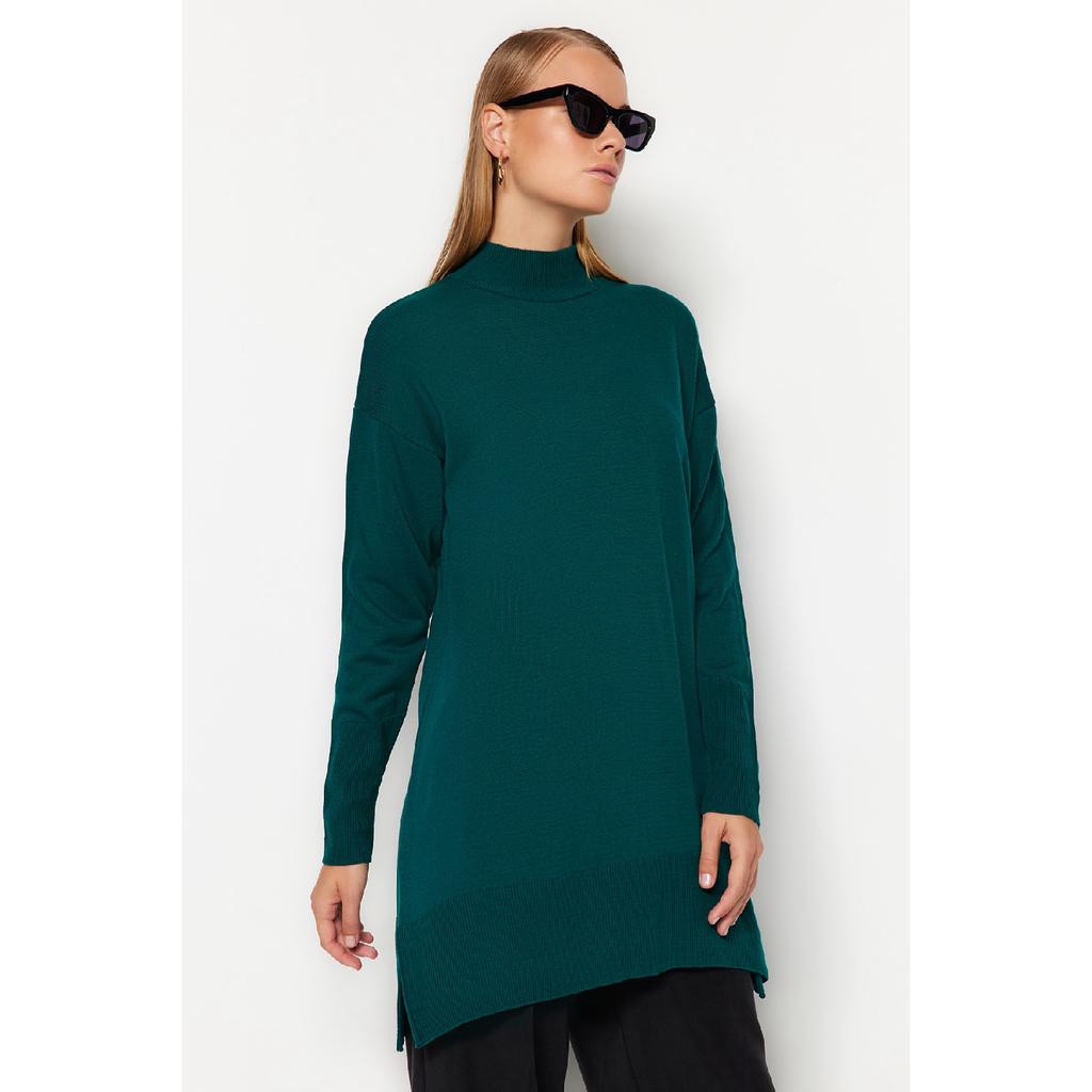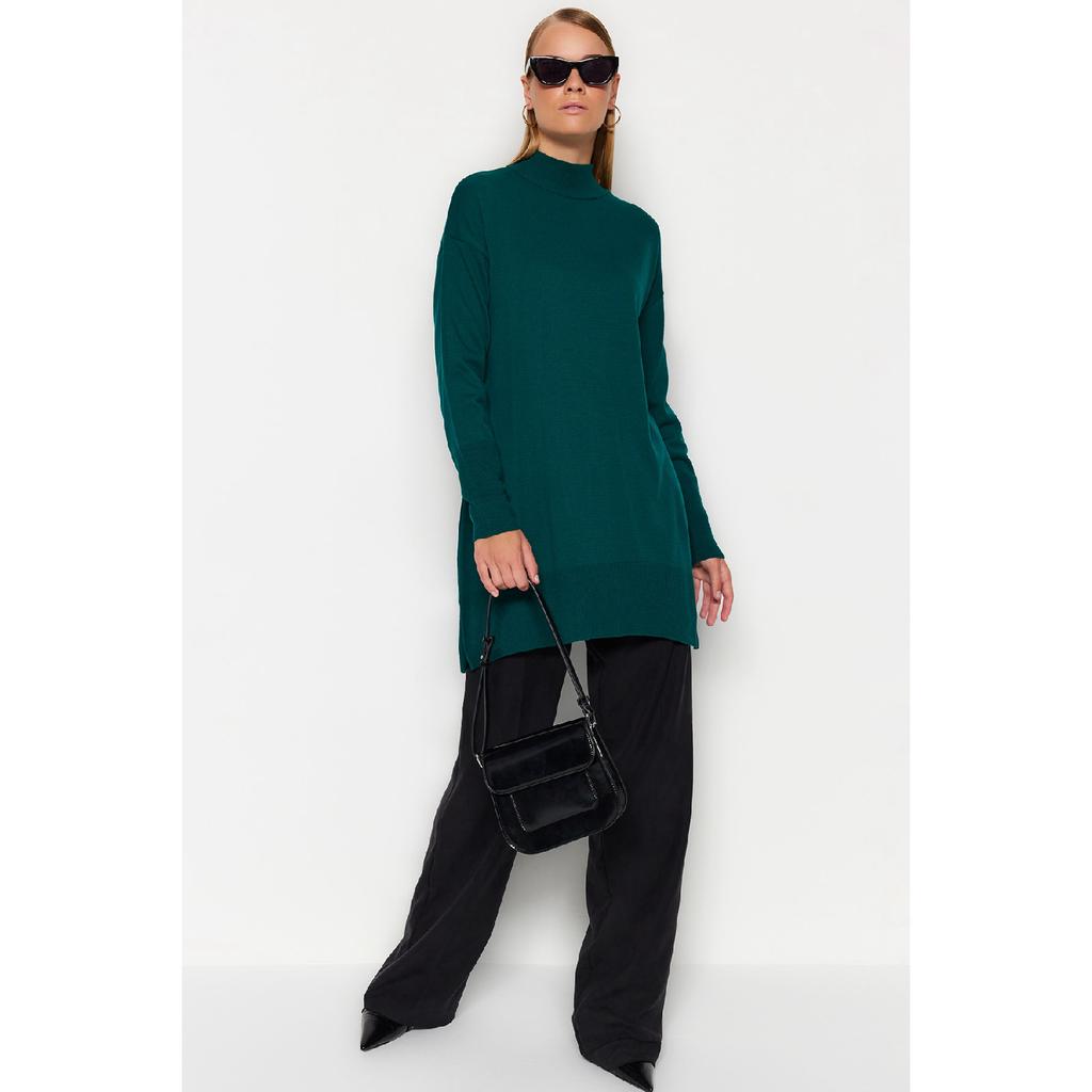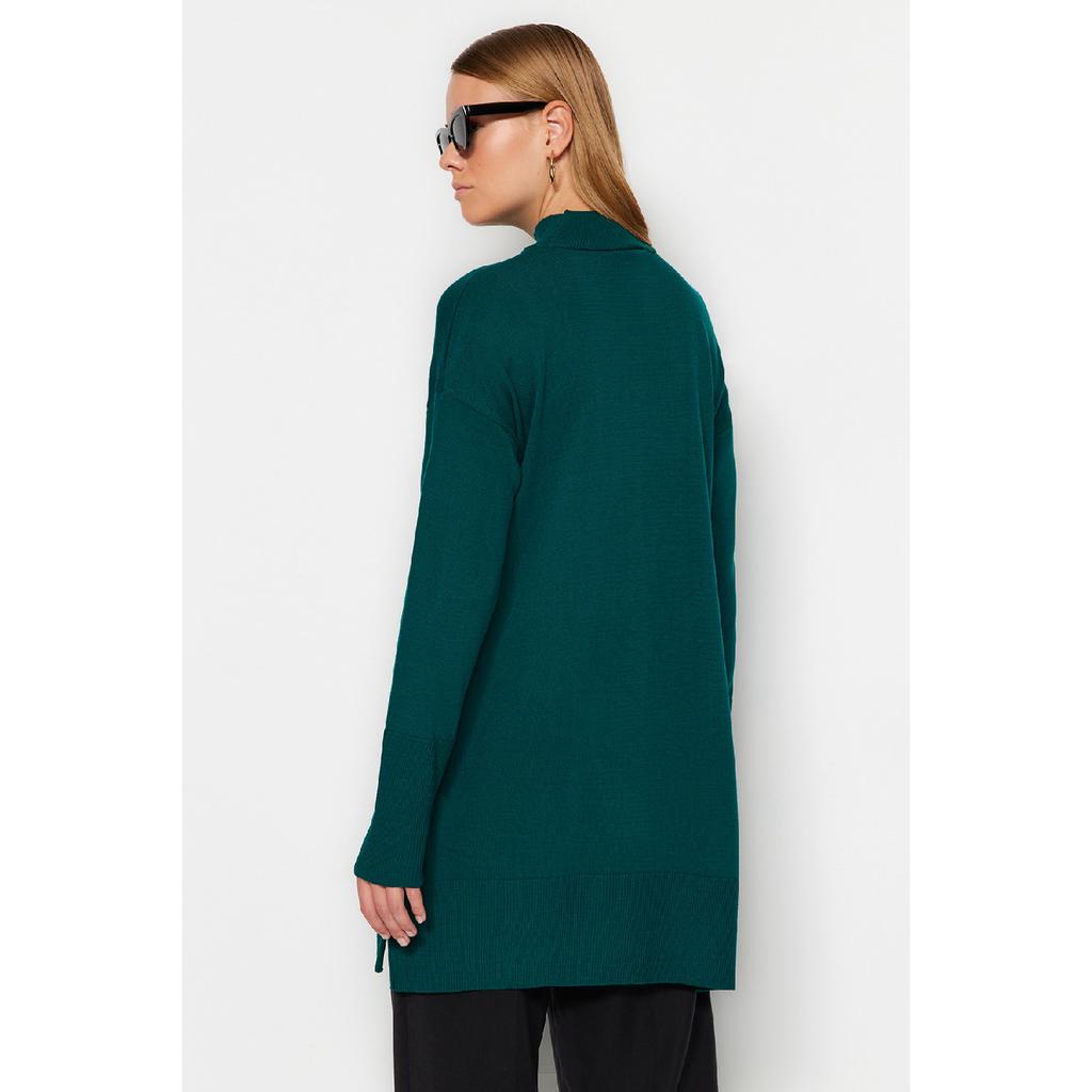 Темно-зеленый вязаный свитер с воротником-стойкой Tctaw24ak00007